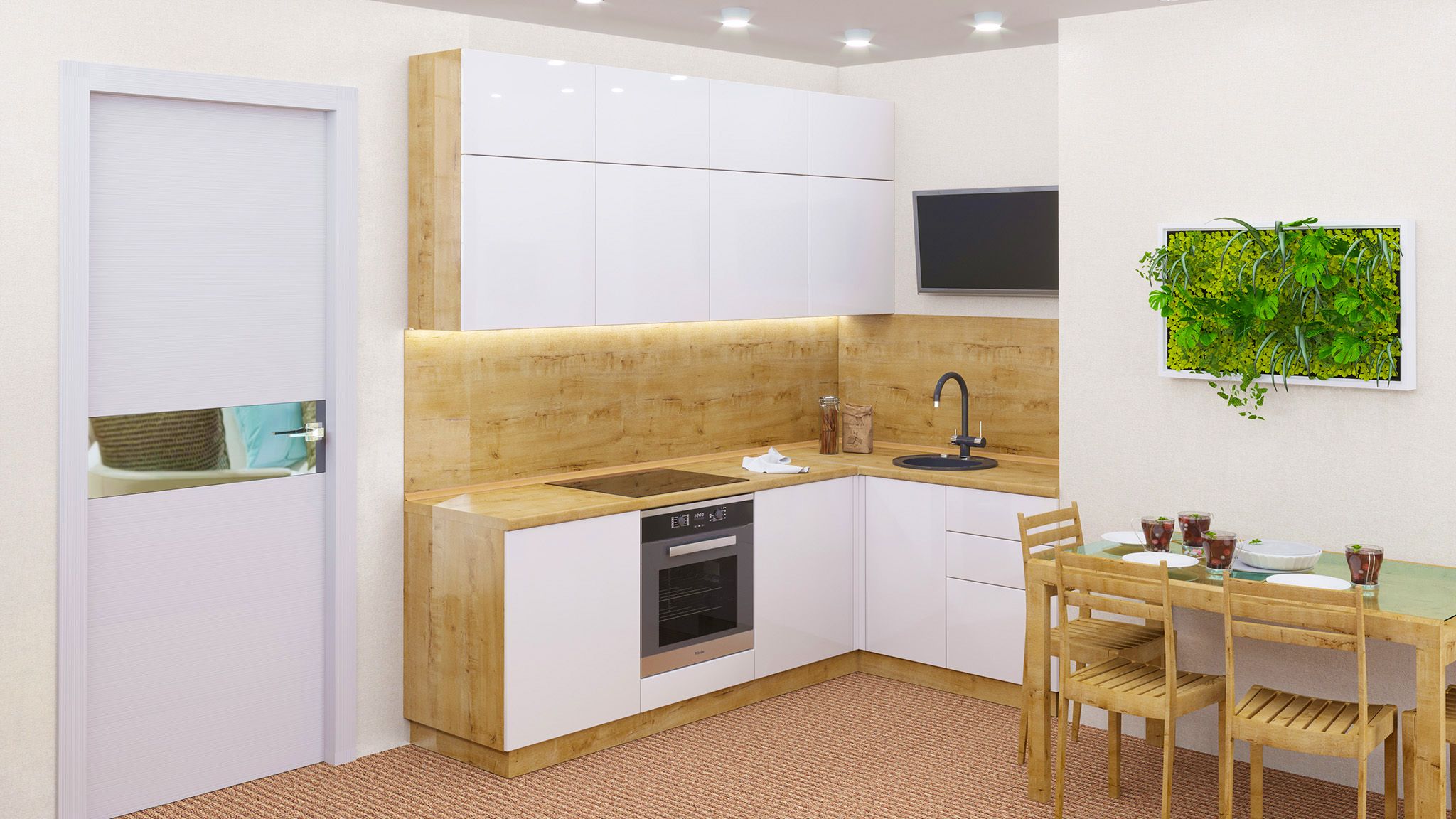 Перед покупкой вы можете посмотреть 3D модель кухни в вашем пространстве, чтобы идеально подобрать ее к вашему дизайну интерьера.