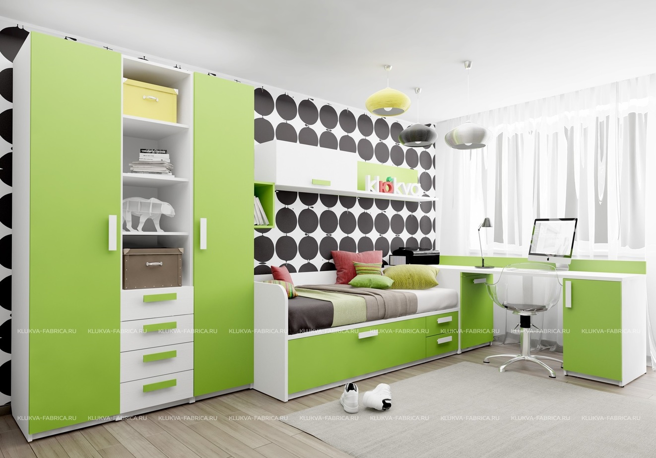 Детская модель 5 выполнена в динамичном стиле и подходит для разной возрастной аудитории. Широкий модульный ряд позволяет создавать универсальные интерьеры, удобные занятий детей. Современная цветовая комбинация создает особую атмосферу уюта, подходящую как для мальчиков, так и для девочек. Для этой модели используются цвета зеленый и белый.