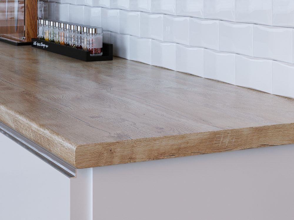 Столешница Дуб светлый имеет поверхность устойчивую к истиранию, ударной нагрузке, образованию царапин и защите от брызг. К износостойкости предъявляются дополнительные требования, которым соответствуют эти столешницы. Эта модель смотрится очень аутентично как на малых так и на больших площадях.
