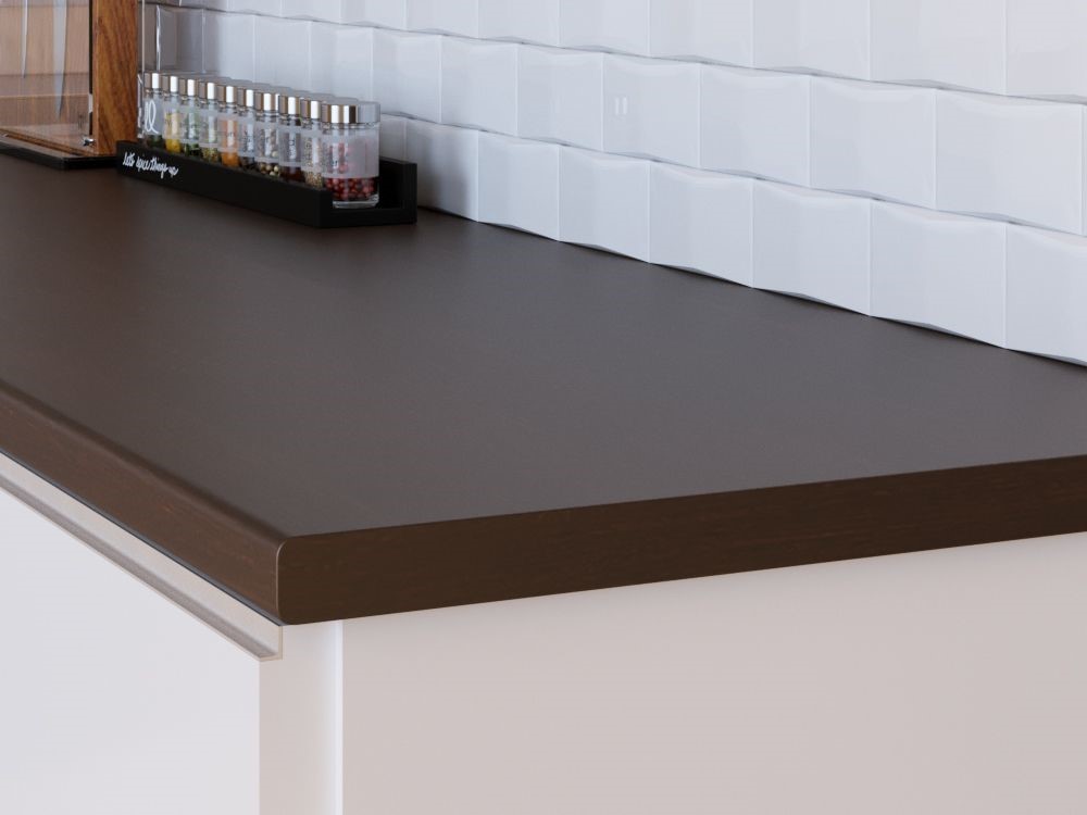 Столешница Венге завершит оформление кухонного гарнитура, обеспечив пространство кухни рабочей зоной и поверхностью для размещения мелкой бытовой техники и кухонных принадлежностей. Она имеет антибактериальные свойства поверхности согласно ISO 22196. Эта модель смотрится очень аутентично как на малых так и на больших площадях.