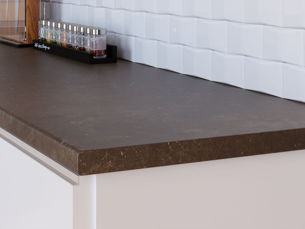 Столешница паутина коричневая имеет стильный вид, легко моется и привлекает к себе внимание. Цвет и материалы столешницы подбираются так, чтобы они были гаромничны дизайну кухонного гарнитура. Имеет высокую термостойкость к горячим предметам.
