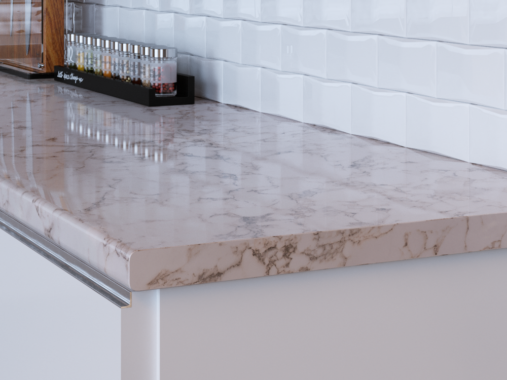 Столешница Мрамор миланский имеет стильный вид, легко моется и привлекает к себе внимание. Цвет и материалы столешницы подбираются так, чтобы они были гаромничны дизайну кухонного гарнитура. Устойчива к образованию пятен, проста в очистке.