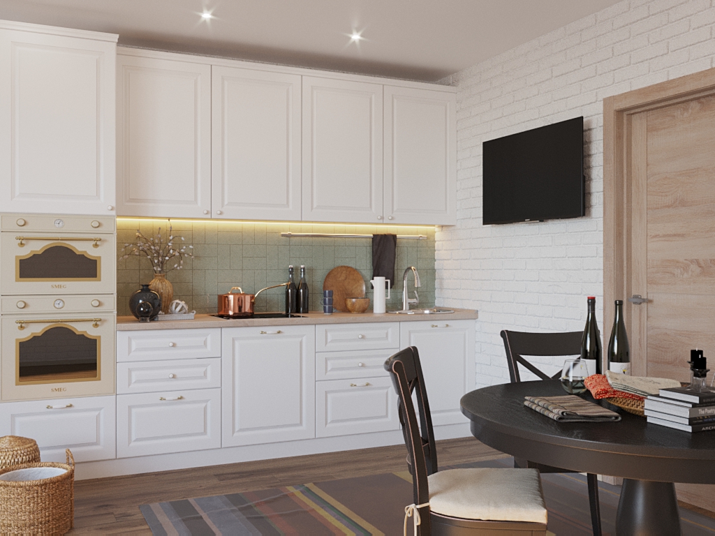 Гарнитур Вегас 11 сразу же привлекает внимание благодаря геометрически выверенным. Форма фасада Вегас 11, которая использует весьма классический стиль, базируется на форме фасадов, характерных для Европы. Оставаясь при этом открытой к экспериментам, модель Вегас 11 не диктует стиль – она помогает воплотить в реальность почти любое интерьерное решение, стоит только выбрать направление. В этом решении используются цвета бежевый и итальянский орех – и ваша кухня, словно базовый гардероб, – стильная и в то же время универсальная. Какой будет характер у кухни Вегас 11 – решать только Вам! В прямой кухне отсутствуют угловые шкафы, а, следовательно, до всего очень легко дотянуться. Для стиля прованс характерны естественные и нежные полутона французской деревни. Как правило, краска крестьянами заменялась известковыми белилами. Для того чтобы придать им какой-либо оттенок, в них добавлялись природные пигменты. Это и объясняет то, почему у истоков данного направления лежит белый цвет. Особенность этой модели матовые фасады, они немаркие и не оставляют отпечатков пальцев. Такие фасады безупречный и яркий вид, более того, они оптимально сочетаются и гармонируют с различной кухонной мебелью.