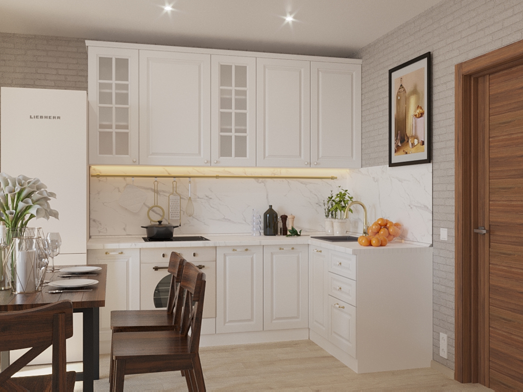 Перед покупкой вы можете посмотреть 3D модель кухни в вашем пространстве, чтобы идеально подобрать ее к вашему дизайну интерьера.