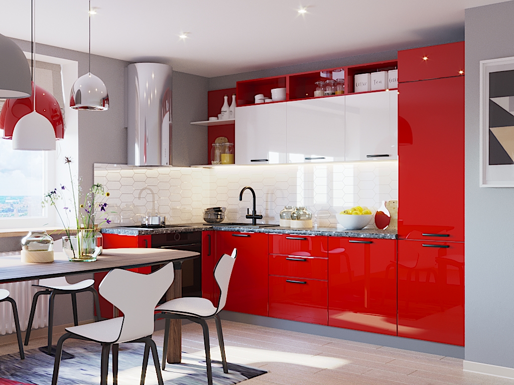 Кухня Авеню 10 сразу же привлекает внимание благодаря изящным линиям. Форма фасада Авеню 10, которая использует весьма современный стиль, базируется на дизайне фасадов, характерных для Европы. Оставаясь при этом открытой к экспериментам, модель Авеню 10 не диктует стиль – она помогает воплотить в реальность почти любое интерьерное решение, стоит только выбрать направление. В этом решении используются цвета красный и белый – и ваша кухня, словно базовый гардероб, – стильная и в то же время универсальная. Какой будет характер у кухни Авеню 10 – решать только Вам! Благодаря большому количеству ящиков и шкафчиков угловая конструкция является наиболее вместительным вариантом, позволяющим обеспечить комфортное хранение посуды и бытовой техники. Яркие и насыщенные цвета в дизайне – тренд, набирающий все большую популярность. В особенности, для многих стал открытием интерьер кухни в красном цвете. Зачастую многие просто не представляют, каких ошеломительных результатов можно добиться, комбинируя спокойные оттенки с вызывающе красными. Одним из популярных городских стилей интерьера является модерн. Он сочетает в себе современные достижения и природные мотивы, пропагандирует простор, лёгкость, минимализм. Этот стиль подходит для всех комнат, вне зависимости от их форм и размеров. Используется он и для оформления помещения, предназначенного для приготовления пищи. Кухня в стиле модерн выглядит просторной, стильной, модной. Кухня с глянцевыми фасадами приобретает стильные и современные штрихи. Любые тона начинают смотреться очень выразительно из-за привлекательного глянцевого блеска.
