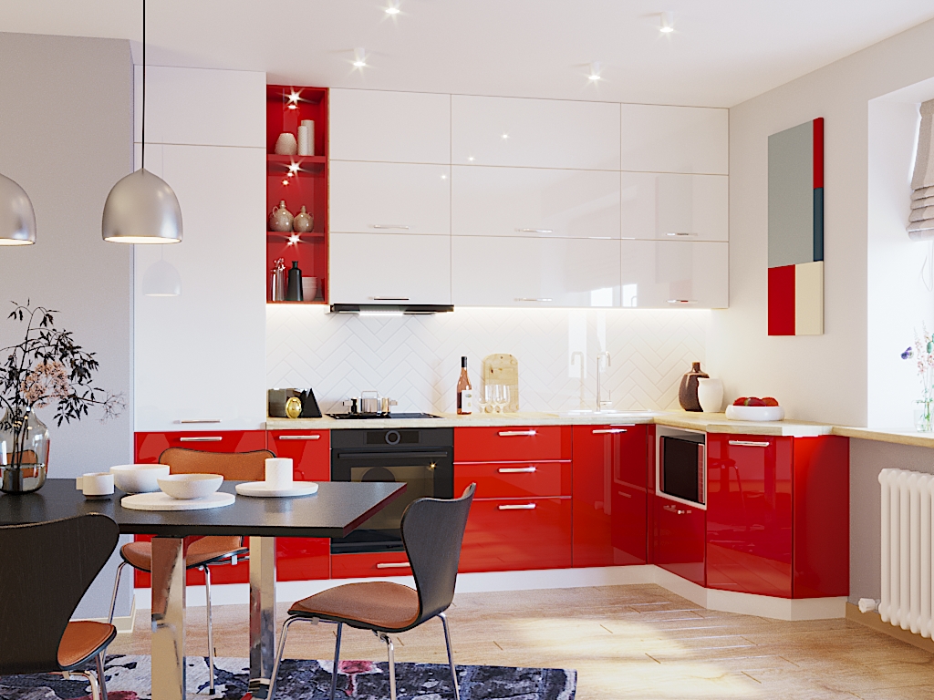 Кухня Авеню 12 сразу же привлекает внимание благодаря геометрически выверенным. Форма фасада Авеню 12, которая использует весьма современный стиль, базируется на дизайне фасадов, характерных для Европы. Оставаясь при этом открытой к экспериментам, модель Авеню 12 не диктует стиль – она помогает воплотить в реальность почти любое интерьерное решение, стоит только выбрать направление. В этом решении используются цвета белый и красный – и ваша кухня, словно базовый гардероб, – стильная и в то же время универсальная. Какой будет характер у кухни Авеню 12 – решать только Вам! Угловая кухня позволяет обустроить эргономичную рабочую зону. Благодаря глубоким и вместительным шкафам, созданы дополнительные места для размещения и хранения посуды, продуктов, кухонных приборов. Чистый и светлый дизайн интерьера белой кухни удачно смотрится в любом жилом помещении. Белый цвет — нейтральный, простой. Он не выходит из моды. Белая кухня впишется в каждый интерьер: от минимализма до помпезной классики. Кухня большая - такие габариты позволяют создать огромное количество вариантов эргономичного размещения посуды и кухонной техники. Каждый стиль имеет свои неповторимые особенности. Кухни в стиле модерн славятся необычным оформлением самых простых и привычных человеку предметов. Здесь продумана каждая деталь до мелочей. В этой модели глянцевые фасады - они появились сравнительно недавно, но стали настоящим украшением современных и стильных кухонь. Глянец очень хорошо отражает свет, поэтому при желании можно до неузнаваемости зрительно изменить геометрию обустраиваемого пространства, расширить помещение.