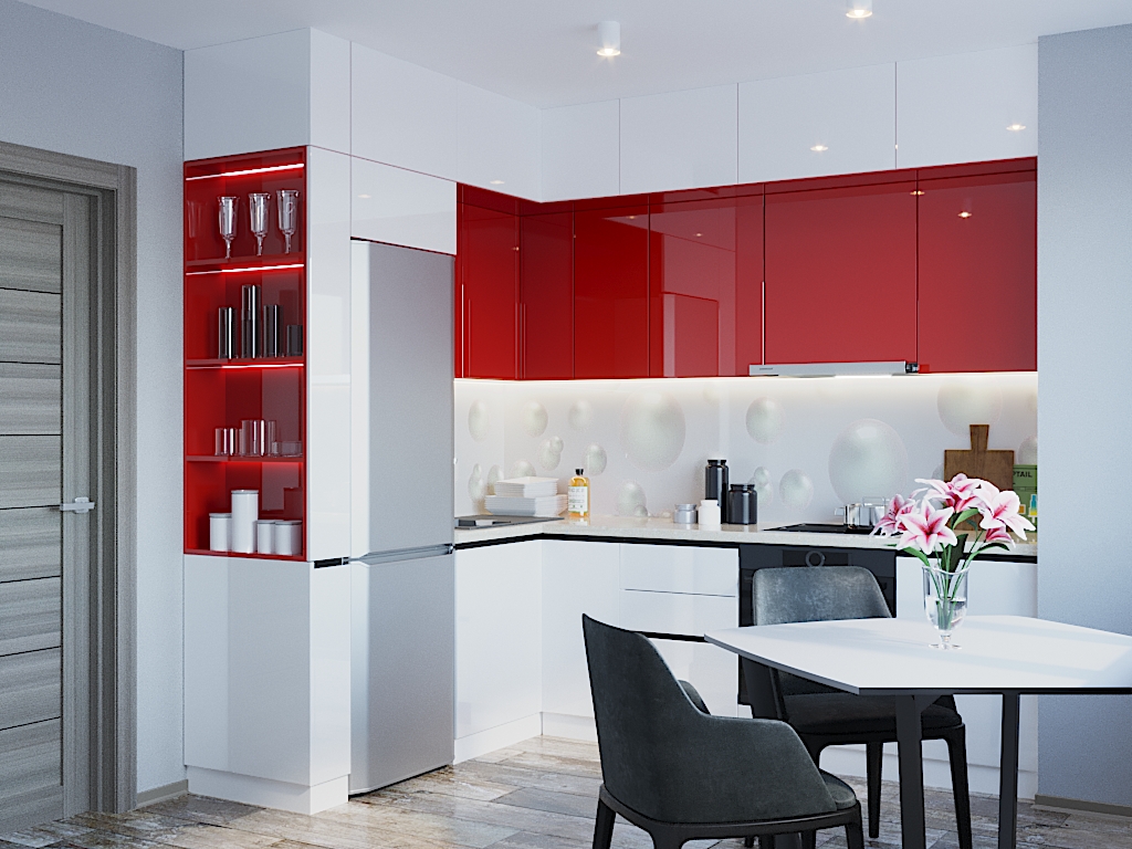 Европейский аристократизм в полной мере присутствуют в модели Авеню 15, наполняя ее неповторимым изяществом. Несомненно кухня Авеню 15 будет смотреться искусно вне времени и моды, чем будет радовать Вашу семью и близких. В модели используются цвета белый и красный, это палитра очень практична и позволяет легко сочетать с яркими цветами элементов интерьера, текстилем и аксессуарами. Авеню 15 для тех, кто любит сочетания гармоничных цветов. Угловая кухня – самая популярная планировка во многих странах мира. Она прекрасно подходит для любых размеров помещения и позволяет разместить все необходимое удобно и компактно. Эффектная, стильная, красивая, роскошная – именно так характеризуется белая кухня из массива дерева. Она добавит объема помещению, создаст атмосферу уюта, подчеркнет безупречный стиль хозяйки. Основной акцент кухонных гарнитуров в стиле модерн – сделан на функциональности. Продуманный и эргономичный дизайн кухни модерн, а также множество вариантов расцветок фасадов и сочетаний различных материалов позволяют максимально структурировать пространство, сформировать необходимые функциональные зоны и создать в помещении универсальную обстановку. Покрытие фасадов глянцевое - на них могут остаться отпечатки рук, но это не беда, поскольку такие загрязнения выводятся без особых усилий.