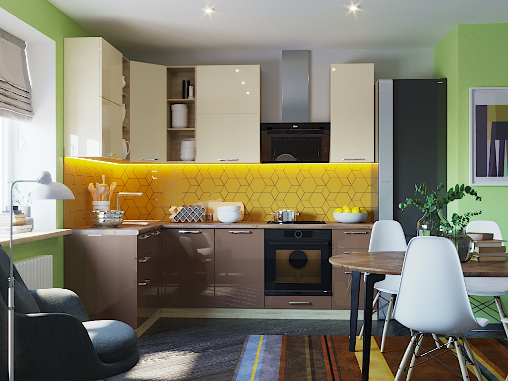Модель Латте 11 с искусными фасадами подарит хорошее настроение любой хозяйке. Для фасадов этой модели используются цвета каппучино и кремовый, тем самым задав интересные акценты. Покрытия имитируют фактуры природных материалов. Все это создает атмосферу уюта. Отсутствие лицевой фурнитуры на верхних модулях формирует стильный дизайн, визуально расширяет помещение. Корпус и фасады шкафов выполнены из ЛДСП. Угловая кухня – самая популярная планировка во многих странах мира. Она прекрасно подходит для любых размеров помещения и позволяет разместить все необходимое удобно и компактно. Цвет капучино считается одним из модных в составлении интерьера кухни. Обладая располагающим воздействием на всех домочадцев, он способен внести в комнату гармонию и чувство домашнего уюта. Каждый стиль имеет свои неповторимые особенности. Кухни в стиле модерн славятся необычным оформлением самых простых и привычных человеку предметов. Здесь продумана каждая деталь до мелочей. Кухня с глянцевыми фасадами приобретает стильные и современные штрихи. Любые тона начинают смотреться очень выразительно из-за привлекательного глянцевого блеска.