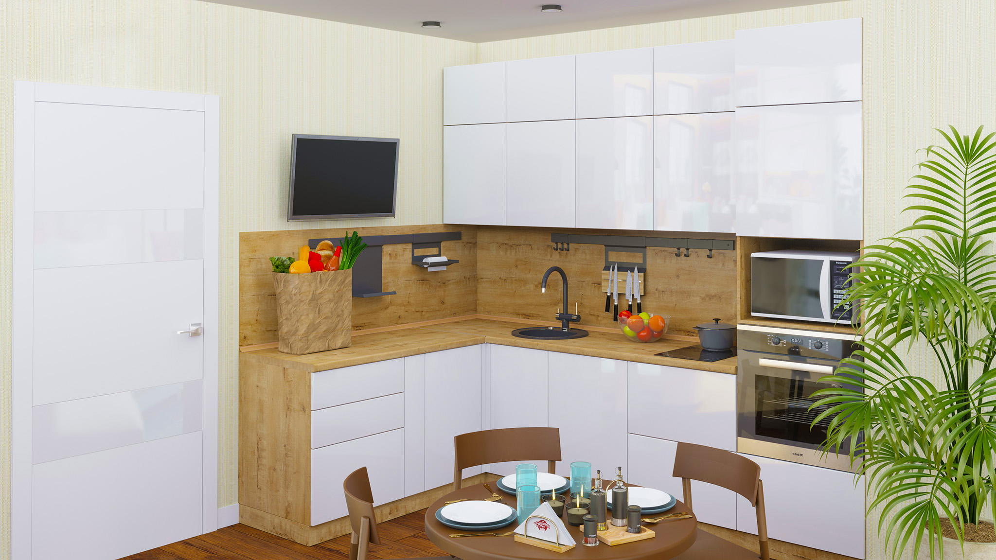 Гарнитур Бьянка 36 сразу же привлекает внимание благодаря изящным линиям. Форма фасада Бьянка 36, которая использует весьма современный стиль, базируется на дизайне фасадов, характерных для Европы. Оставаясь при этом открытой к экспериментам, модель Бьянка 36 не диктует стиль – она помогает воплотить в реальность почти любое интерьерное решение, стоит только выбрать направление. В этом решении используются цвета белый и светлый бук – и ваша кухня, словно базовый гардероб, – стильная и в то же время универсальная. Какой будет характер у кухни Бьянка 36 – решать только Вам! Угловая планировка кухонного гарнитура позволяет рационально использовать угловое пространство. Чистый и светлый дизайн интерьера белой кухни удачно смотрится в любом жилом помещении. Белый цвет — нейтральный, простой. Он не выходит из моды. Белая кухня впишется в каждый интерьер: от минимализма до помпезной классики. Модерн можно назвать одним из самых гибких стилей, так как он не ограничивается одними материалами, цветами и формами. Именно поэтому каждая кухня этого стиля неповторима, имеет свои индивидуальные особенности. Покрытие фасадов глянцевое - на них могут остаться отпечатки рук, но это не беда, поскольку такие загрязнения выводятся без особых усилий.