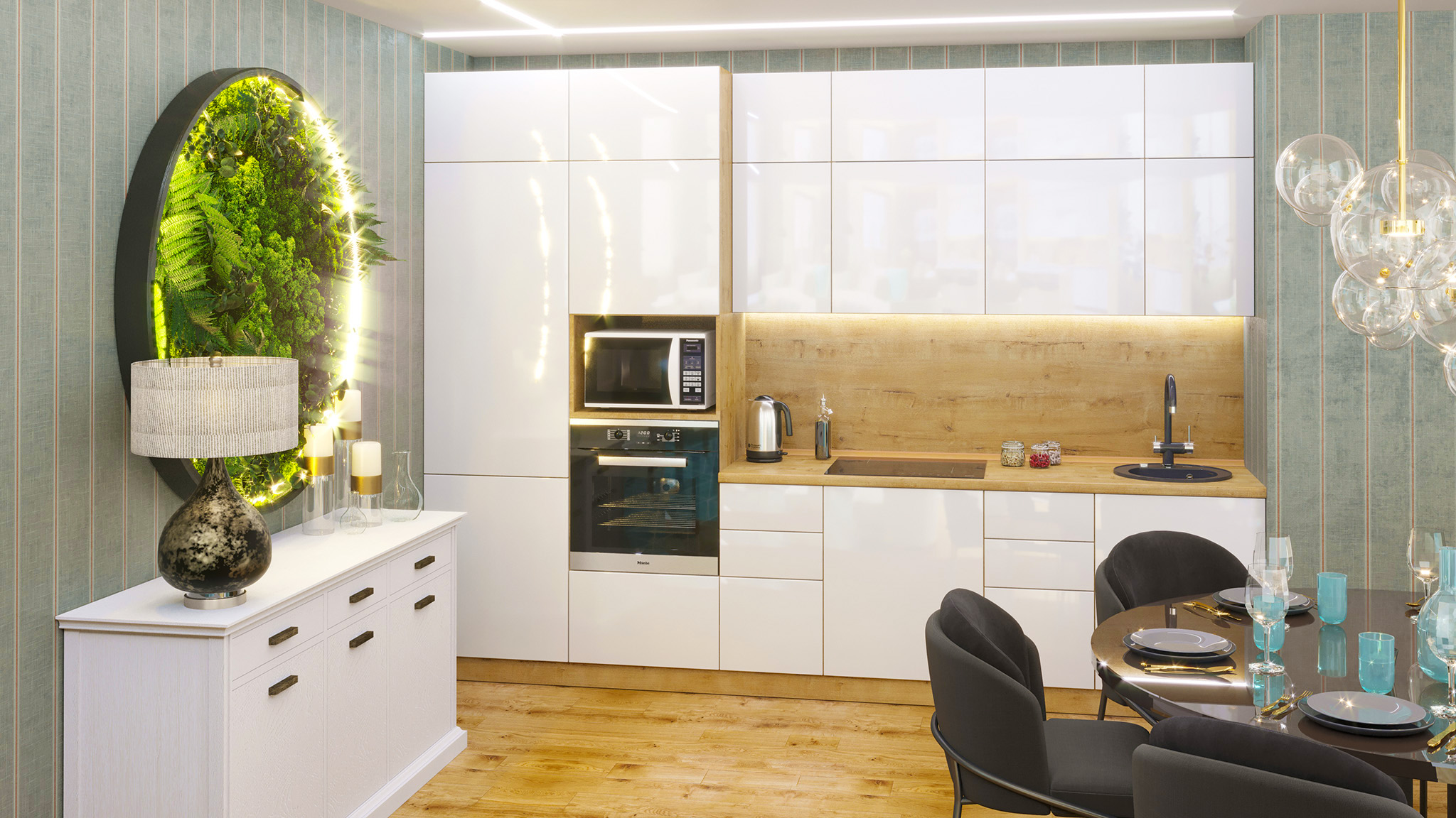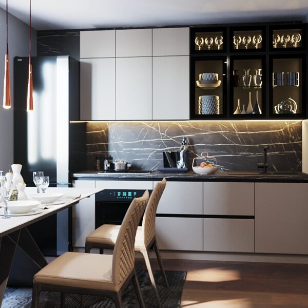 Перед покупкой вы можете посмотреть 3D модель кухни в вашем пространстве, чтобы идеально подобрать ее к вашему дизайну интерьера.