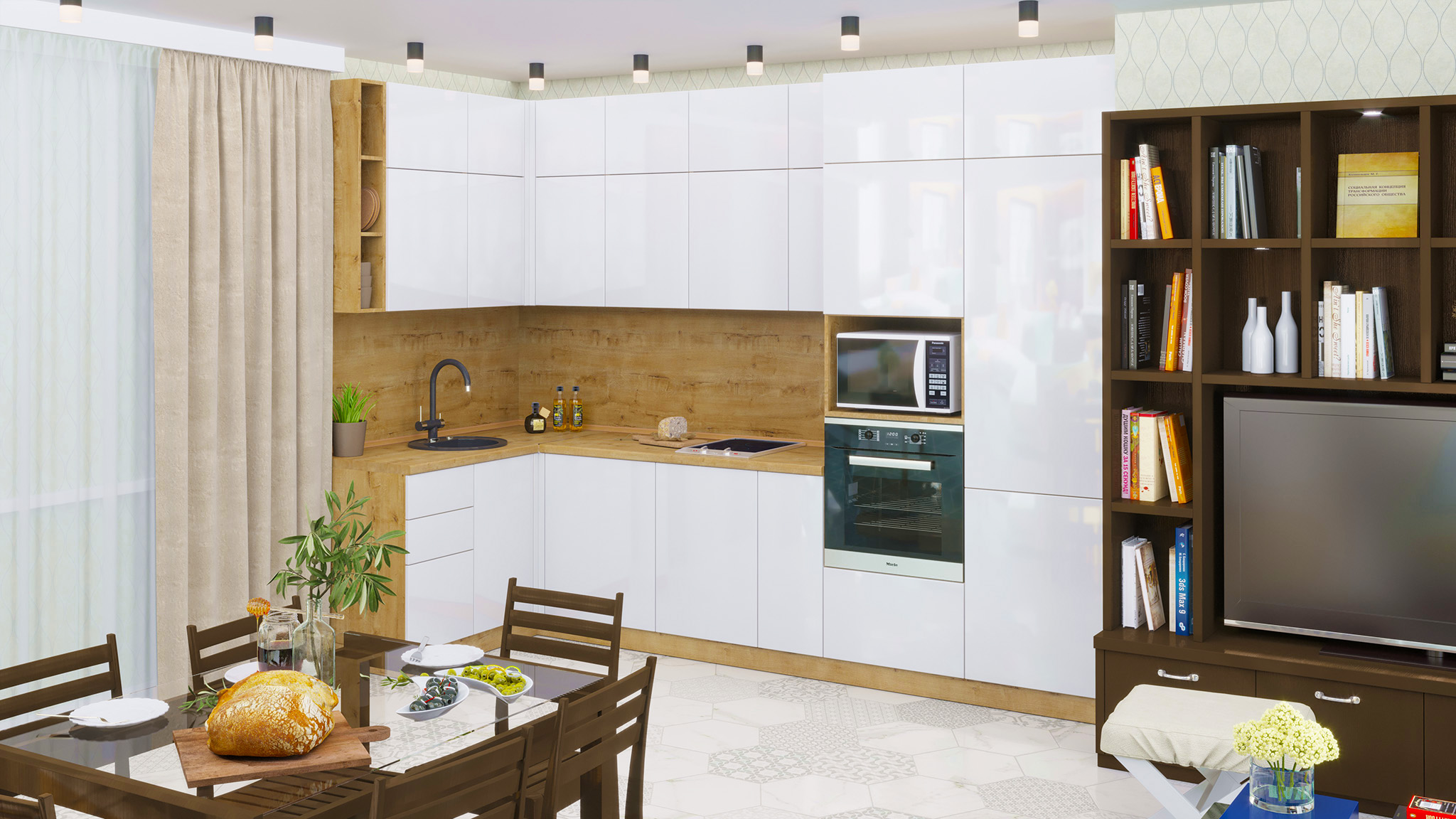 Гарнитур Бьянка 50 имеет современный – это прекрасный выбор для тех, кто обладает безупречным вкусом, чтит семейные традиции и предпочитает жить в атмосфере удобства. Модель Бьянка 50 олицетворяет центр домашнего очага в лучшем ее проявлении. Аристократичная роскошь и сдержанная элегантность – это основные составляющие дизайнерской идеи кухни Бьянка 50. Скрупулезно выполненные фасады добавляют обстановке роскошь и торжественность. Угловая планировка очень удобна. Она будет уместна и в большом, и в маленьком помещении. Такая кухня представляет собой треугольную зону где мебель и техника располагаются у смежных стен. Чистый и светлый дизайн интерьера белой кухни удачно смотрится в любом жилом помещении. Белый цвет — нейтральный, простой. Он не выходит из моды. Белая кухня впишется в каждый интерьер: от минимализма до помпезной классики. Модерн можно назвать одним из самых гибких стилей, так как он не ограничивается одними материалами, цветами и формами. Именно поэтому каждая кухня этого стиля неповторима, имеет свои индивидуальные особенности. Кухня с глянцевыми фасадами приобретает стильные и современные штрихи. Любые тона начинают смотреться очень выразительно из-за привлекательного глянцевого блеска.