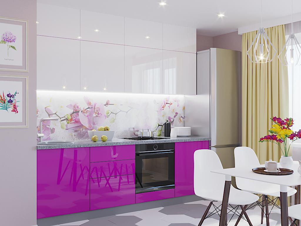 Кухня Виола 1 имеет современный – это прекрасный выбор для тех, кто обладает великолепным вкусом, чтит семейные традиции и предпочитает жить в атмосфере удобства. Модель Виола 1 олицетворяет центр домашнего очага в лучшем ее проявлении. Аристократичная роскошь и сдержанная элегантность – это основные составляющие дизайнерской идеи кухни Виола 1. Скрупулезно выполненные фасады добавляют обстановке роскошь и торжественность. Благодаря прямой кухне можно визуально расширить пространство, ведь она занимает совсем не много места. Это кухня небольшая, но даже здесь можно создать идеальное место для семейных ужинов, посиделок с друзьями и приготовления своих кулинарных шедевров. Стиль модерн предполагает зонирование пространства и контраст. Здесь можно использовать все – потолки разного уровня, различные покрытия для пола, барные стойки. Чередование гладких и шероховатых фактур, самое необычное сочетание различных цветов, а также игра света – всё будет как нельзя кстати. В этой модели глянцевые фасады - они появились сравнительно недавно, но стали настоящим украшением современных и стильных кухонь. Глянец очень хорошо отражает свет, поэтому при желании можно до неузнаваемости зрительно изменить геометрию обустраиваемого пространства, расширить помещение.
