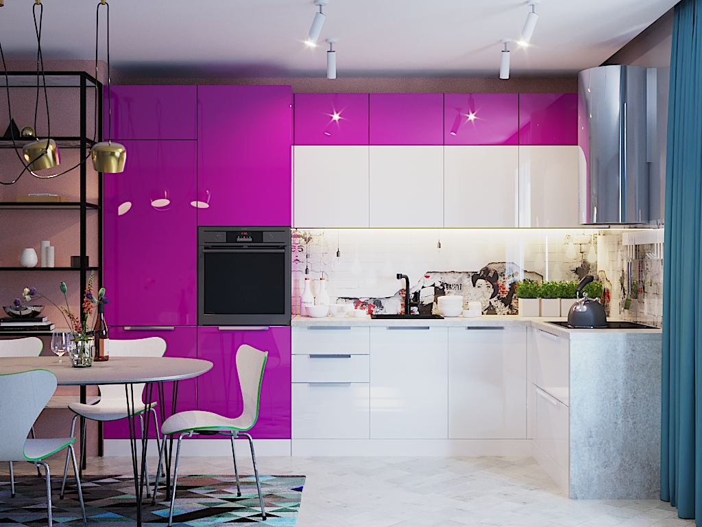 Гарнитур Виола 18 сразу же привлекает внимание благодаря геометрически выверенным. Форма фасада Виола 18, которая использует весьма современный стиль, базируется на форме фасадов, характерных для Европы. Оставаясь при этом открытой к экспериментам, модель Виола 18 не диктует стиль – она помогает воплотить в реальность почти любое интерьерное решение, стоит только выбрать направление. В этом решении используются цвета белый и фуксия – и ваша кухня, словно базовый гардероб, – стильная и в то же время универсальная. Какой будет характер у кухни Виола 18 – решать только Вам! Угловая кухня – самая популярная планировка во многих странах мира. Она прекрасно подходит для любых размеров помещения и позволяет разместить все необходимое удобно и компактно. Эта кухня белая. Психологи утверждают: белый — это символ счастья, невинности и чистоты. В цветотерапии с его помощью лечат тревожные расстройства и депрессии. Большая кухня - это не просто комната, а центр квартиры — там мы принимаем пищу, сюда приводим гостей, здесь ведем длинные задушевные разговоры. В большом зале можно расположить большее количество шкафчиков для красивой посуды и кастрюлей, разместить больше членов семьи. Дизайну в стиле модерн характерны асимметричность и чистые, плавные, изящные линии. Здесь наилучшим образом сочетаются декоративность и функциональность. Декорирование в этом стиле стремиться к упрощению, рациональности и эстетизму. В этой модели глянцевые фасады - они появились сравнительно недавно, но стали настоящим украшением современных и стильных кухонь. Глянец очень хорошо отражает свет, поэтому при желании можно до неузнаваемости зрительно изменить геометрию обустраиваемого пространства, расширить помещение.