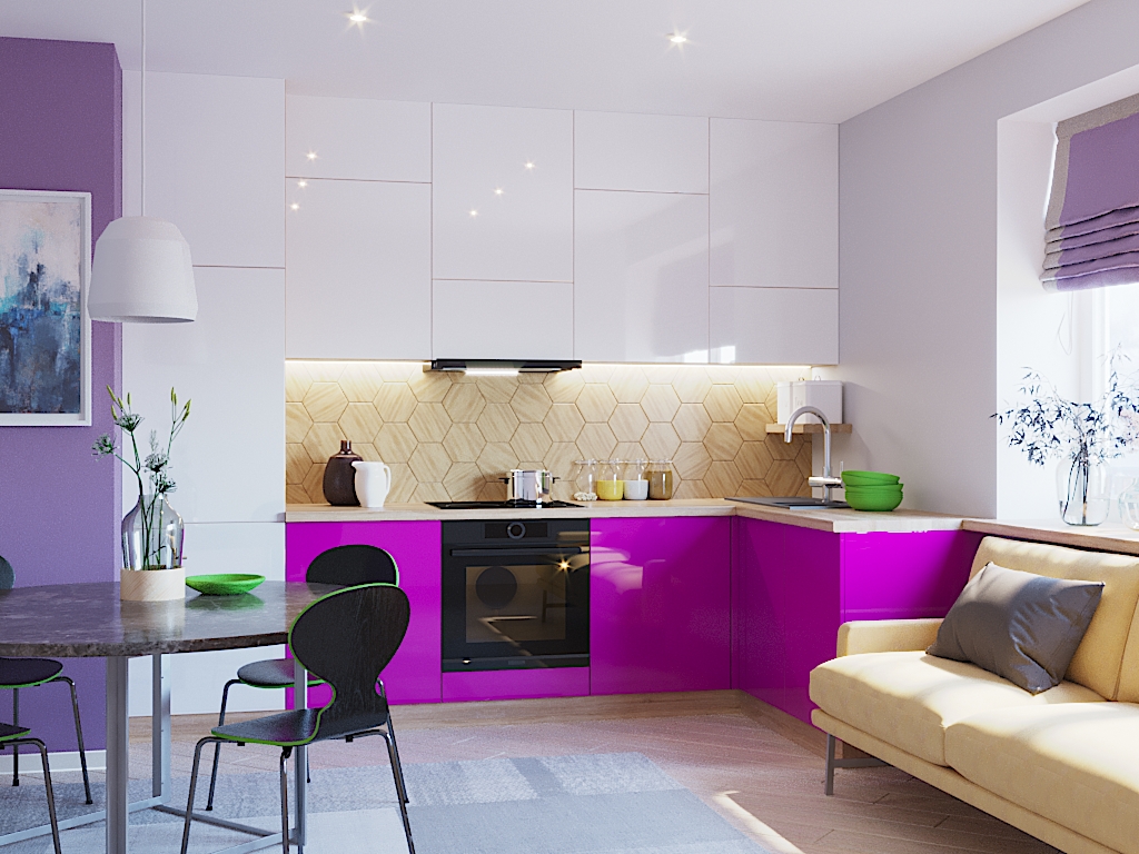 Кухня Виола 19 имеет современный – это прекрасный выбор для тех, кто обладает великолепным вкусом, чтит семейные традиции и предпочитает жить в атмосфере комфорта. Модель Виола 19 олицетворяет центр домашнего очага в лучшем ее проявлении. Аристократичная роскошь и сдержанная элегантность – это основные составляющие дизайнерской идеи кухни Виола 19. Скрупулезно выполненные фасады добавляют обстановке роскошь и торжественность. Угловая планировка кухонного гарнитура позволяет рационально использовать угловое пространство. Чистый и светлый дизайн интерьера белой кухни удачно смотрится в любом жилом помещении. Белый цвет — нейтральный, простой. Он не выходит из моды. Белая кухня впишется в каждый интерьер: от минимализма до помпезной классики. Дизайну в стиле модерн характерны асимметричность и чистые, плавные, изящные линии. Здесь наилучшим образом сочетаются декоративность и функциональность. Декорирование в этом стиле стремиться к упрощению, рациональности и эстетизму. Кухня с глянцевыми фасадами приобретает стильные и современные штрихи. Любые тона начинают смотреться очень выразительно из-за привлекательного глянцевого блеска.