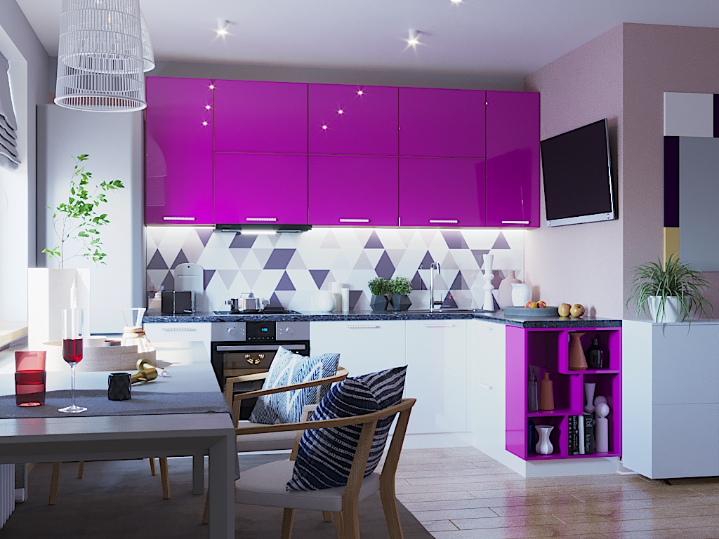 Гарнитур Виола 21 сразу же привлекает внимание благодаря изящным линиям. Форма фасада Виола 21, которая использует весьма современный стиль, базируется на дизайне фасадов, характерных для Европы. Оставаясь при этом открытой к экспериментам, модель Виола 21 не диктует стиль – она помогает воплотить в реальность почти любое интерьерное решение, стоит только выбрать направление. В этом решении используются цвета фуксия и белый – и ваша кухня, словно базовый гардероб, – стильная и в то же время универсальная. Какой будет характер у кухни Виола 21 – решать только Вам! Планировка угловой кухни – одна из самых удобных среди остальных видов. Она позволяет комфортно использовать рабочее пространство, освобождает место, выглядит компактно. Кухня большая - такие габариты позволяют создать огромное количество вариантов эргономичного размещения посуды и кухонной техники. Дизайну в стиле модерн характерны асимметричность и чистые, плавные, изящные линии. Здесь наилучшим образом сочетаются декоративность и функциональность. Декорирование в этом стиле стремиться к упрощению, рациональности и эстетизму. Кухня с глянцевыми фасадами приобретает стильные и современные штрихи. Любые тона начинают смотреться очень выразительно из-за привлекательного глянцевого блеска.