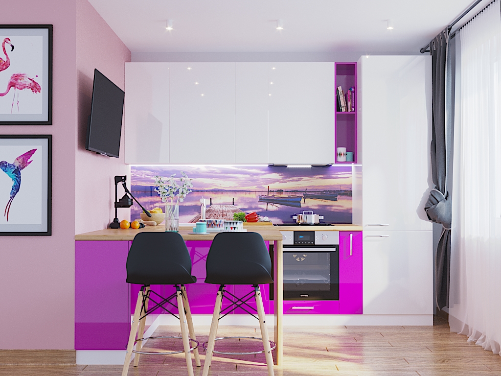 Кухня Виола 26 сразу же привлекает внимание благодаря геометрически выверенным. Форма фасада Виола 26, которая использует весьма современный стиль, базируется на дизайне фасадов, характерных для Европы. Оставаясь при этом открытой к экспериментам, модель Виола 26 не диктует стиль – она помогает воплотить в реальность почти любое интерьерное решение, стоит только выбрать направление. В этом решении используются цвета белый и фуксия – и ваша кухня, словно базовый гардероб, – стильная и в то же время универсальная. Какой будет характер у кухни Виола 26 – решать только Вам! Островной кухня - это многофункциональный кухонный стол, который располагается на расстоянии от остального гарнитура и делает его удобнее. Это и дополнительная рабочая столешница, и места для хранения. Островная планировка хороша не для каждой кухни: она должна быть просторной и не слишком вытянутой в длину. Эффектная, стильная, красивая, роскошная – именно так характеризуется белая кухня из массива дерева. Она добавит объема помещению, создаст атмосферу уюта, подчеркнет безупречный стиль хозяйки. Большая кухня - это не просто комната, а центр квартиры — там мы принимаем пищу, сюда приводим гостей, здесь ведем длинные задушевные разговоры. В большом зале можно расположить большее количество шкафчиков для красивой посуды и кастрюлей, разместить больше членов семьи. Основной акцент кухонных гарнитуров в стиле модерн – сделан на функциональности. Продуманный и эргономичный дизайн кухни модерн, а также множество вариантов расцветок фасадов и сочетаний различных материалов позволяют максимально структурировать пространство, сформировать необходимые функциональные зоны и создать в помещении универсальную обстановку. Кухня с глянцевыми фасадами приобретает стильные и современные штрихи. Любые тона начинают смотреться очень выразительно из-за привлекательного глянцевого блеска.