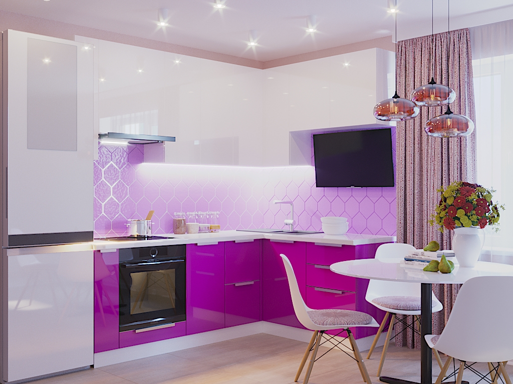Кухня Виола 8 сразу же привлекает внимание благодаря изящным линиям. Форма фасада Виола 8, которая использует весьма современный стиль, базируется на дизайне фасадов, характерных для Европы. Оставаясь при этом открытой к экспериментам, модель Виола 8 не диктует стиль – она помогает воплотить в реальность почти любое интерьерное решение, стоит только выбрать направление. В этом решении используются цвета белый и фуксия – и ваша кухня, словно базовый гардероб, – стильная и в то же время универсальная. Какой будет характер у кухни Виола 8 – решать только Вам! С точки зрения практичности и функциональности угловые кухни являются наиболее оптимальным вариантом размещения кухонной мебели. Чистый и светлый дизайн интерьера белой кухни удачно смотрится в любом жилом помещении. Белый цвет — нейтральный, простой. Он не выходит из моды. Белая кухня впишется в каждый интерьер: от минимализма до помпезной классики. Основной акцент кухонных гарнитуров в стиле модерн – сделан на функциональности. Продуманный и эргономичный дизайн кухни модерн, а также множество вариантов расцветок фасадов и сочетаний различных материалов позволяют максимально структурировать пространство, сформировать необходимые функциональные зоны и создать в помещении универсальную обстановку. Кухня с глянцевыми фасадами приобретает стильные и современные штрихи. Любые тона начинают смотреться очень выразительно из-за привлекательного глянцевого блеска.