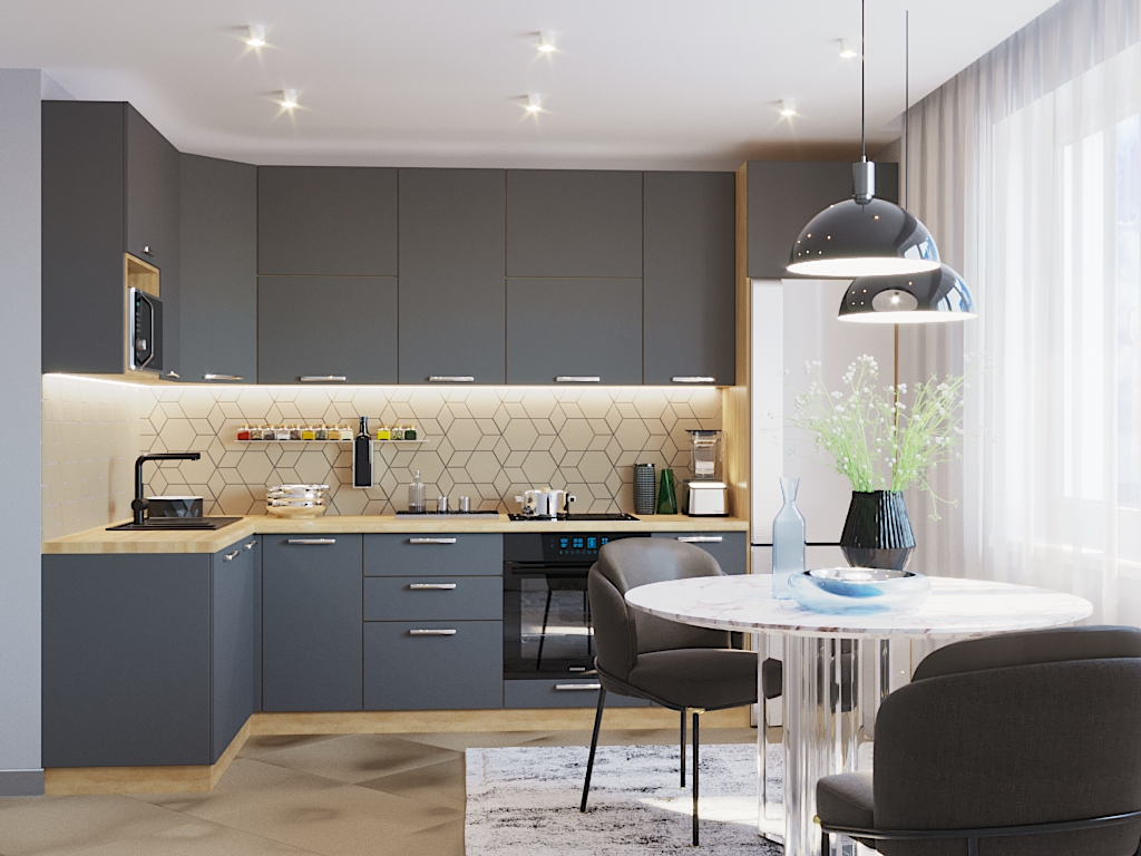 Перед покупкой вы можете посмотреть 3D модель кухни в вашем пространстве, чтобы идеально подобрать ее к вашему дизайну интерьера.