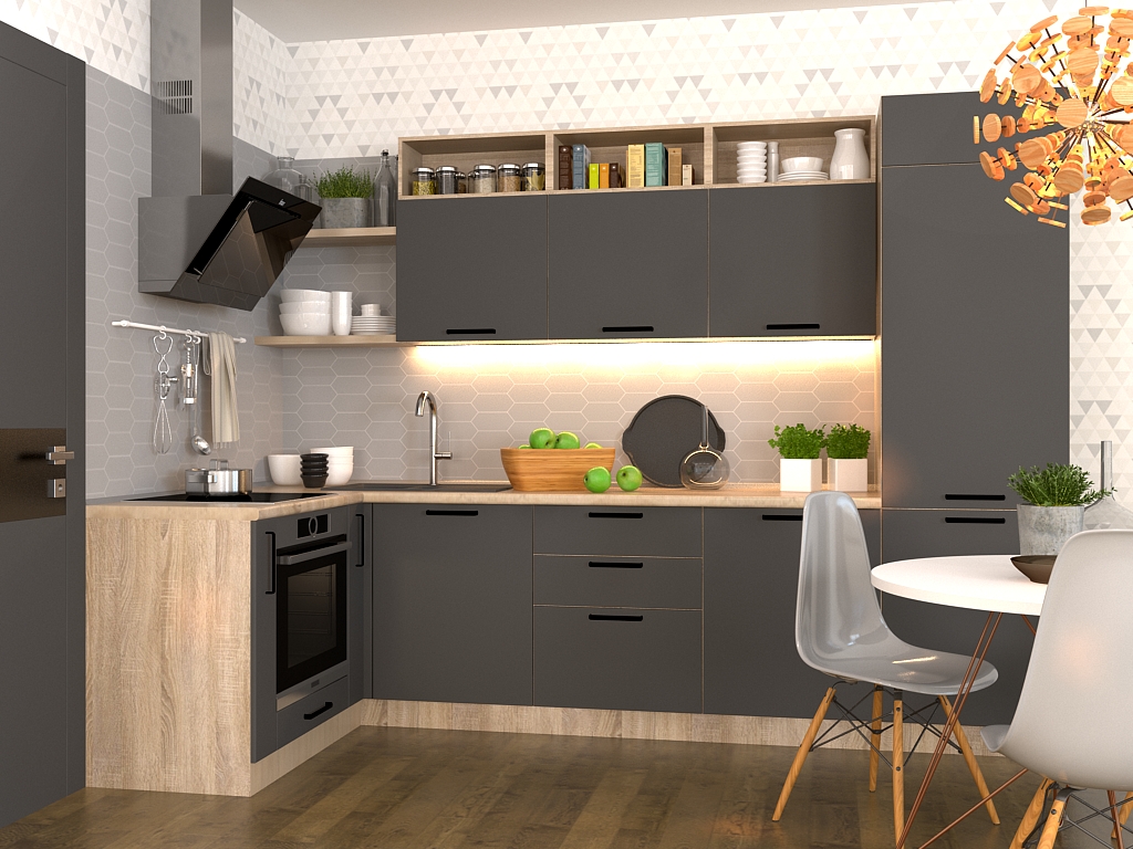 Вдохновляясь красотой природы, была создана модель Грэй 10, основа которой — уникальное покрытие фасадов и неповторимое благородство дерева. Структурированная поверхность выглядит утонченно, а фактура придаёт интерьеру тепло и спокойствие. Кухня Грэй 10 создаёт ощущение уюта — то чувство, которое вдохновляет нас на новые победы. Гармоничный внешний вид дополнен бескомпромиссной функциональностью и удобством: автоматические системы плавного и беззвучного закрытия сделают ваше пребывание на кухне ещё более комфортным. Кухня Грэй 10 — это доступное решение для любого интерьера. Угловая кухня – самая популярная планировка во многих странах мира. Она прекрасно подходит для любых размеров помещения и позволяет разместить все необходимое удобно и компактно. Серая кухня – необычное решение для комфортного и функционального помещения. Такой цвет воспринимается как символ индустриального города, утонувшего в смоге многочисленных фабрик и автомобилей. Но палитра серого оттенка достаточно разнообразна, кроме того она способна успокоить нервную систему человека. Основной акцент кухонных гарнитуров в стиле модерн – сделан на функциональности. Продуманный и эргономичный дизайн кухни модерн, а также множество вариантов расцветок фасадов и сочетаний различных материалов позволяют максимально структурировать пространство, сформировать необходимые функциональные зоны и создать в помещении универсальную обстановку. Особенность этой модели матовые фасады, они немаркие и не оставляют отпечатков пальцев. Такие фасады безупречный и яркий вид, более того, они оптимально сочетаются и гармонируют с различной кухонной мебелью.