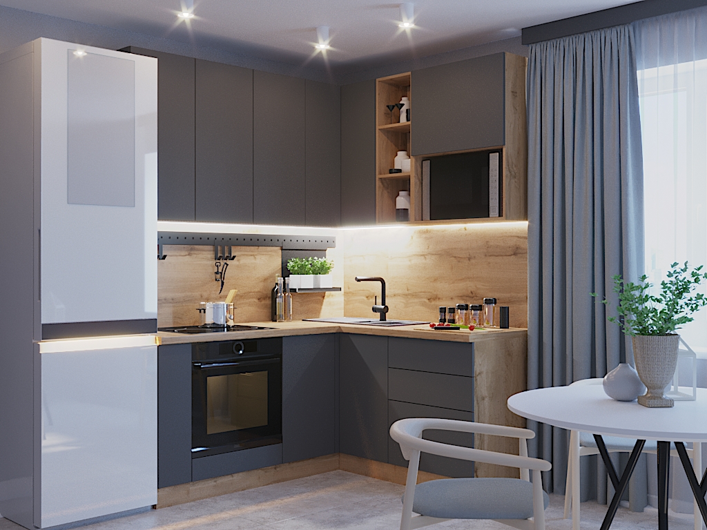 Перед покупкой вы можете посмотреть 3D модель кухни в вашем пространстве, чтобы идеально подобрать ее к вашему дизайну интерьера.