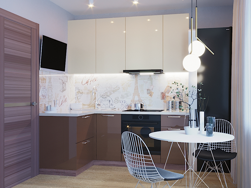 Модель Латте 17 имеет современный – это прекрасный выбор для тех, кто обладает великолепным вкусом, чтит семейные традиции и предпочитает жить в атмосфере роскоши. Модель Латте 17 олицетворяет центр домашнего очага в лучшем ее проявлении. Аристократичная роскошь и сдержанная элегантность – это основные составляющие дизайнерской идеи кухни Латте 17. Скрупулезно выполненные фасады добавляют обстановке роскошь и торжественность. Угловая кухня – самая популярная планировка во многих странах мира. Она прекрасно подходит для любых размеров помещения и позволяет разместить все необходимое удобно и компактно. Оттенок капучино в интерьере кухонного помещения – это теплота, мягкость и эстетическое удовольствие. Цвет вызывает приятные ассоциации и способен создать не только уютную атмосферу, но и стильное пространство, в котором все будут чувствовать себя комфортно. Основной акцент кухонных гарнитуров в стиле модерн – сделан на функциональности. Продуманный и эргономичный дизайн кухни модерн, а также множество вариантов расцветок фасадов и сочетаний различных материалов позволяют максимально структурировать пространство, сформировать необходимые функциональные зоны и создать в помещении универсальную обстановку. Покрытие фасадов глянцевое - на них могут остаться отпечатки рук, но это не беда, поскольку такие загрязнения выводятся без особых усилий.