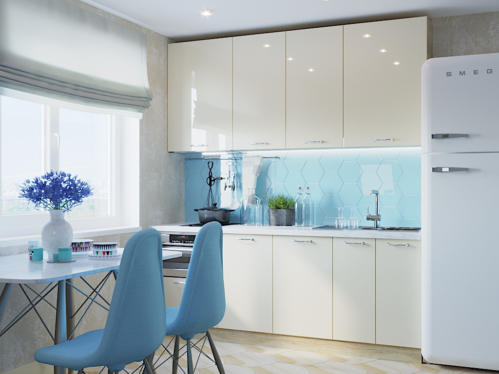 Дизайн гарнитура Латте 9 выглядит поистине великолепно. Каждая линия в нем идеальна и неповторима. Фасады выполнены по оригинальной технологии, специальное покрытие делает цвет глубоким и позволяет легко ухаживать за поверхностью. Столешница и декоративные панели органично сочетаются с утонченным дизайном кухни. Это все позволяет преобразить вашу кухню в роскошный зал для приема гостей. Прямые кухни не занимают много места и оставляют пространство, в котором можно обустроить уютную обеденную зону. Стиль модерн предполагает зонирование пространства и контраст. Здесь можно использовать все – потолки разного уровня, различные покрытия для пола, барные стойки. Чередование гладких и шероховатых фактур, самое необычное сочетание различных цветов, а также игра света – всё будет как нельзя кстати. В этой модели глянцевые фасады - они появились сравнительно недавно, но стали настоящим украшением современных и стильных кухонь. Глянец очень хорошо отражает свет, поэтому при желании можно до неузнаваемости зрительно изменить геометрию обустраиваемого пространства, расширить помещение.