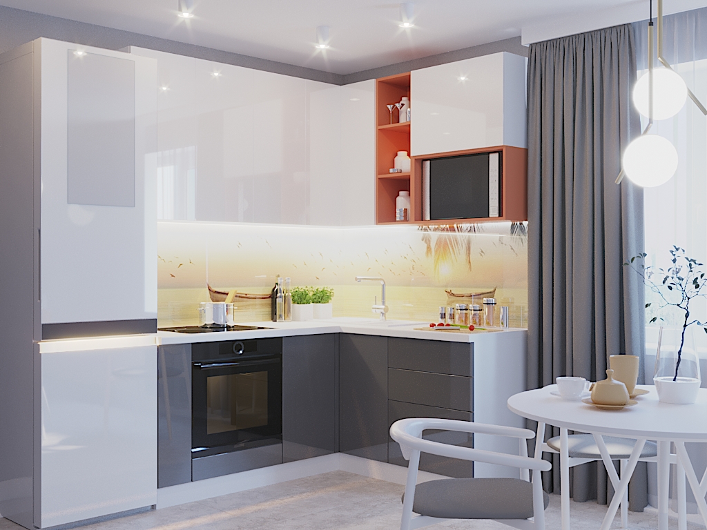 Гарнитур Манхеттен 2 выглядит поистине очаровывающе. Любая линия в нем идеальна и неповторима. Фасады выполнены по новой технологии, специальное покрытие делает цвет глубоким и позволяет легко ухаживать за поверхностью. Столешница и декоративные панели органично сочетаются с утонченным дизайном кухни. Это все позволяет преобразить вашу кухню в чудесный зал для приема гостей. Угловая планировка очень удобна. Она будет уместна и в большом, и в маленьком помещении. Такая кухня представляет собой треугольную зону где мебель и техника располагаются у смежных стен. Дизайн кухни в сером цвете, это современное и практичное решение. Данный оттенок легко впишется в любой стиль, на нем не видно грязи и он отлично сочетается со всей палитрой цветов. Это кухня небольшая, но даже здесь можно создать идеальное место для семейных ужинов, посиделок с друзьями и приготовления своих кулинарных шедевров. Одним из популярных городских стилей интерьера является модерн. Он сочетает в себе современные достижения и природные мотивы, пропагандирует простор, лёгкость, минимализм. Этот стиль подходит для всех комнат, вне зависимости от их форм и размеров. Используется он и для оформления помещения, предназначенного для приготовления пищи. Кухня в стиле модерн выглядит просторной, стильной, модной. В этой модели глянцевые фасады - они появились сравнительно недавно, но стали настоящим украшением современных и стильных кухонь. Глянец очень хорошо отражает свет, поэтому при желании можно до неузнаваемости зрительно изменить геометрию обустраиваемого пространства, расширить помещение.
