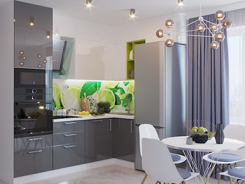 Дизайн гарнитура Манхеттен 5 выглядит поистине очаровывающе. Каждая линия в нем идеальна и неповторима. Фасады выполнены по оригинальной технологии, специальное покрытие делает цвет глубоким и позволяет легко ухаживать за поверхностью. Рабочая зона может быть организована в виде очага с вытяжкой в едином стиле со всей композицией. Это все позволяет преобразить вашу кухню в чудесный зал для приема гостей. Исполнение кухни угловое - оно удобно и практично. При помощи его пространство можно распределять наиболее эффективно. Если вы любите атмосферу спокойствия, свежести и утонченности в доме, то использование серого цвета в интерьере кухни будет беспроигрышным решением. Несмотря на свои размеры, кухня очень практичная и комфортная. С вместительными шкафами, полками, отделениями для встраиваемой техники и ящиками для мелочей проще поддерживать порядок, удобнее готовить, и находиться в такой кухне гораздо приятнее. Основной акцент кухонных гарнитуров в стиле модерн – сделан на функциональности. Продуманный и эргономичный дизайн кухни модерн, а также множество вариантов расцветок фасадов и сочетаний различных материалов позволяют максимально структурировать пространство, сформировать необходимые функциональные зоны и создать в помещении универсальную обстановку. Покрытие фасадов глянцевое - на них могут остаться отпечатки рук, но это не беда, поскольку такие загрязнения выводятся без особых усилий.