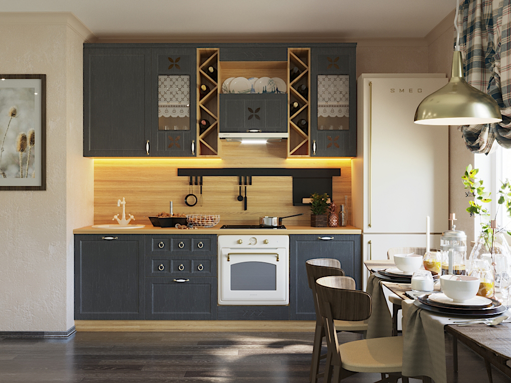 Окрыляясь чувством прерасного, была создана кухня Прованс 14, основа которой — оригинальное покрытие фасадов и неповторимое благородство дерева. Структурированная поверхность выглядит утонченно, а фактура придаёт интерьеру тепло и спокойствие. Кухня Прованс 14 создаёт ощущение уюта — то чувство, которое вдохновляет нас на новые победы. Гармоничный внешний вид дополнен бескомпромиссной функциональностью и удобством: автоматические системы плавного и беззвучного закрытия сделают ваше пребывание на кухне ещё более комфортным. Кухня Прованс 14 — это доступное решение для любого интерьера. Прямые кухни не занимают много места и оставляют пространство, в котором можно обустроить уютную обеденную зону. Если вы любите атмосферу спокойствия, свежести и утонченности в доме, то использование серого цвета в интерьере кухни будет беспроигрышным решением. Несмотря на свои размеры, кухня очень практичная и комфортная. С вместительными шкафами, полками, отделениями для встраиваемой техники и ящиками для мелочей проще поддерживать порядок, удобнее готовить, и находиться в такой кухне гораздо приятнее. Нежный, благородный и самобытный стиль прованс покоряет своим непосредственным деревенским колоритом, французским шармом и некой наивностью. Он идеально подходит романтичным натурам, которые любят окружать себя красивыми вещами, ценят комфорт и уют. Покрытие фасадов матовое - это означает, что фасады не оставляют отпечатков пальцев и очень легки в уходе.