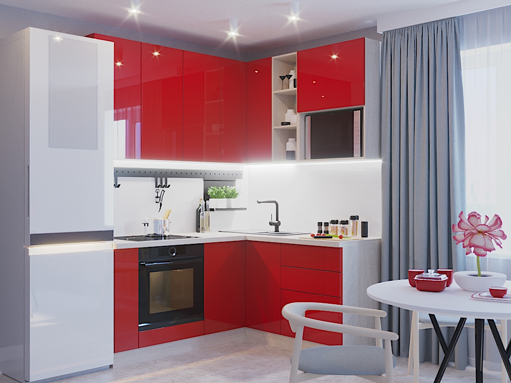 Модель Авеню 2 с изящными фасадами подарит великолепное настроение любой хозяйке. Для фасадов этой модели используются цвета красный и белый, тем самым задав интересные акценты. Покрытия имитируют фактуры природных материалов. Все это создает атмосферу умиротворения. Отсутствие лицевой фурнитуры на верхних модулях формирует стильный дизайн, визуально расширяет помещение. Корпус и фасады шкафов выполнены из ЛДСП. Угловая кухня – самая популярная планировка во многих странах мира. Она прекрасно подходит для любых размеров помещения и позволяет разместить все необходимое удобно и компактно. Яркие и насыщенные цвета в дизайне – тренд, набирающий все большую популярность. В особенности, для многих стал открытием интерьер кухни в красном цвете. Зачастую многие просто не представляют, каких ошеломительных результатов можно добиться, комбинируя спокойные оттенки с вызывающе красными. Дизайну в стиле модерн характерны асимметричность и чистые, плавные, изящные линии. Здесь наилучшим образом сочетаются декоративность и функциональность. Декорирование в этом стиле стремиться к упрощению, рациональности и эстетизму. Кухня с глянцевыми фасадами приобретает стильные и современные штрихи. Любые тона начинают смотреться очень выразительно из-за привлекательного глянцевого блеска.
