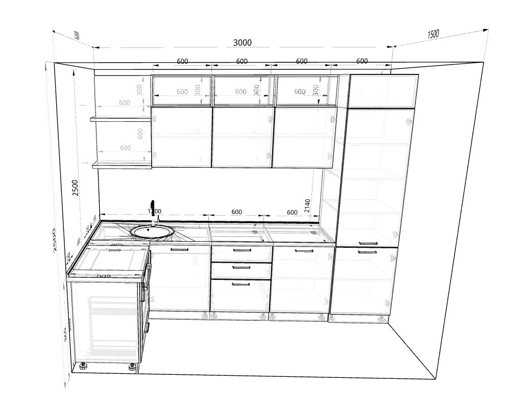 | В стоимость входит | корпуса, фасады, столешница, фурнитура (ручки / направляющие/петли/механизмы Push/опоры/навесы и планка для навески / крепеж), 2 бутылочницы |