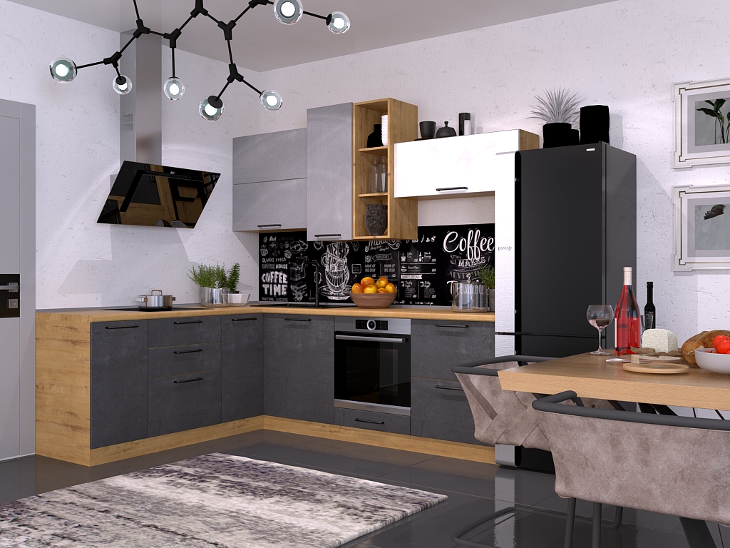 Вдохновляясь новыми трендами, была создана кухня Чикаго 11, основа которой — оригинальное покрытие фасадов и неповторимое благородство дерева. Структурированная поверхность выглядит утонченно, а фактура придаёт интерьеру тепло и спокойствие. Кухня Чикаго 11 создаёт ощущение свободы — то чувство, которое вдохновляет нас на новые победы. Гармоничный внешний вид дополнен бескомпромиссной функциональностью и удобством: автоматические системы плавного и беззвучного закрытия сделают ваше пребывание на кухне ещё более комфортным. Кухня Чикаго 11 — это практичное решение для любого интерьера. Угловая кухня – самая популярная планировка во многих странах мира. Она прекрасно подходит для любых размеров помещения и позволяет разместить все необходимое удобно и компактно. Графитовые кухни — это сочетание современных модных тенденций с универсальностью. Кухня большая - такие габариты позволяют создать огромное количество вариантов эргономичного размещения посуды и кухонной техники. Кухня в стиле лофт — прекрасная идея для динамичных натур, не боящихся рисковать и живущих в ритме большого города. Подобный интерьер — настоящая кладовая самых смелых дизайнерских решений с использованием урбанистических материалов: кирпича, бетона, металла, пластика, стекла. Кухни лофт также предусматривают нестандартные планировки, нетрадиционное использование отделочных материалов, эргономичную расстановку мебели, смелую цветовую палитру и оригинальный декор. Особенность этой модели матовые фасады, они немаркие и не оставляют отпечатков пальцев. Такие фасады безупречный и яркий вид, более того, они оптимально сочетаются и гармонируют с различной кухонной мебелью.