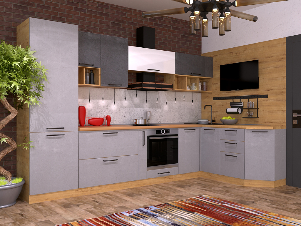 Вдохновляясь красотой природы, была создана кухня Чикаго 17, основа которой — уникальное покрытие фасадов и неповторимое благородство дерева. Структурированная поверхность выглядит утонченно, а фактура придаёт интерьеру тепло и спокойствие. Кухня Чикаго 17 создаёт ощущение свободы — то чувство, которое вдохновляет нас на новые победы. Гармоничный внешний вид дополнен бескомпромиссной функциональностью и удобством: автоматические системы плавного и беззвучного закрытия сделают ваше пребывание на кухне ещё более комфортным. Кухня Чикаго 17 — это практичное решение для любого интерьера. Угловая кухня позволяет обустроить эргономичную рабочую зону. Благодаря глубоким и вместительным шкафам, созданы дополнительные места для размещения и хранения посуды, продуктов, кухонных приборов. Если вы любите атмосферу спокойствия, свежести и утонченности в доме, то использование серого цвета в интерьере кухни будет беспроигрышным решением. На большой кухне будет легче и проще реализовать любую идею, воплотить все мечты, сделать кухню удобной, наполненной всем необходимым, при этом уютной и милой. Кухня в стиле лофт — прекрасная идея для динамичных натур, не боящихся рисковать и живущих в ритме большого города. Подобный интерьер — настоящая кладовая самых смелых дизайнерских решений с использованием урбанистических материалов: кирпича, бетона, металла, пластика, стекла. Кухни лофт также предусматривают нестандартные планировки, нетрадиционное использование отделочных материалов, эргономичную расстановку мебели, смелую цветовую палитру и оригинальный декор. В этой модели используются матовые фасады - они очень практичны, немаркие и за ними очень легко ухаживать. На них не остаются видимыми отпечатки пальцев.