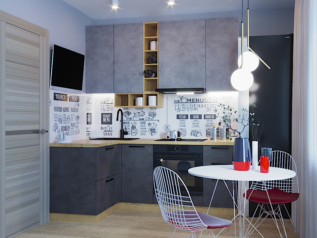Модель Чикаго 38 с искусными фасадами подарит отличное настроение любой хозяйке. Для фасадов этой модели используются цвета графитовый и серый, тем самым задав интересные акценты. Покрытия имитируют фактуры природных материалов. Все это создает атмосферу умиротворения. Отсутствие лицевой фурнитуры на верхних модулях формирует стильный дизайн, визуально расширяет помещение. Корпус и фасады шкафов выполнены из ЛДСП. Угловая кухня позволяет обустроить эргономичную рабочую зону. Благодаря глубоким и вместительным шкафам, созданы дополнительные места для размещения и хранения посуды, продуктов, кухонных приборов. Графитовые кухни — это сочетание современных модных тенденций с универсальностью. Интерьер кухни в стиле лофт подойдет для ценителей пространства оупенспейс. Однако его можно зонировать с помощью различных ширм и перегородок. Иногда таковыми выступают предметы мебели. Например, барная стойка может не только визуально, но и функционально разделить помещение. Она объединяет в себе элементы кухонного острова и обеденного стола. Дополнить ее можно барными стульями из дерева и металла, а также подвесными металлическими светильниками. Особенность этой модели матовые фасады, они немаркие и не оставляют отпечатков пальцев. Такие фасады безупречный и яркий вид, более того, они оптимально сочетаются и гармонируют с различной кухонной мебелью.