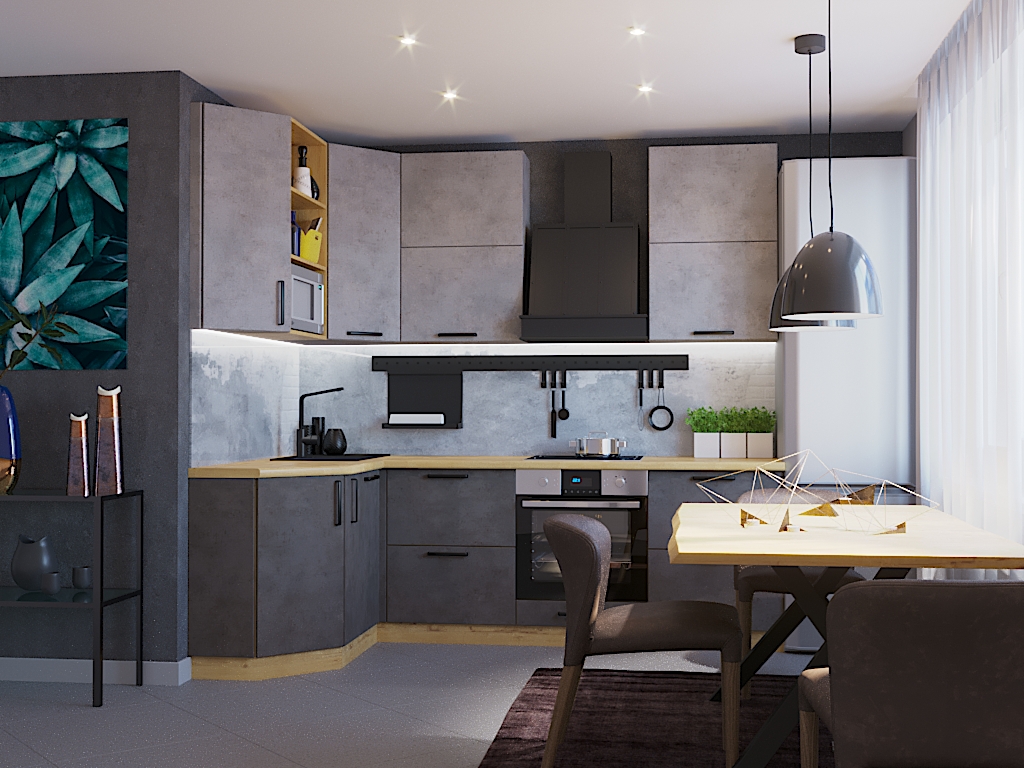Перед покупкой вы можете посмотреть 3D модель кухни в вашем пространстве, чтобы идеально подобрать ее к вашему дизайну интерьера.