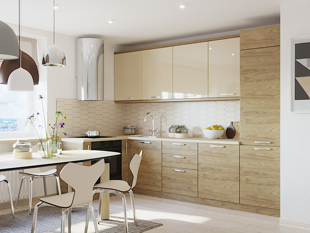 Перед покупкой вы можете посмотреть 3D модель кухни в вашем пространстве, чтобы идеально подобрать ее к вашему дизайну интерьера.