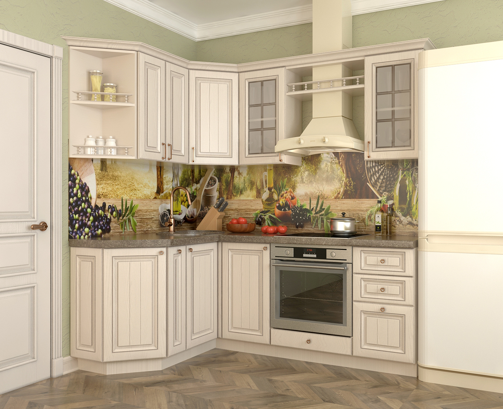 Гарнитур Палермо 2 сразу же привлекает внимание благодаря геометрически выверенным. Форма фасада Палермо 2, которая использует весьма классический стиль, базируется на дизайне фасадов, характерных для Европы. Оставаясь при этом открытой к экспериментам, модель Палермо 2 не диктует стиль – она помогает воплотить в реальность почти любое интерьерное решение, стоит только выбрать направление. В этом решении используется цвет кремовый – и ваша кухня, словно базовый гардероб, – стильная и в то же время универсальная. Какой будет характер у кухни Палермо 2 – решать только Вам! Угловая кухня позволяет обустроить эргономичную рабочую зону. Благодаря глубоким и вместительным шкафам, созданы дополнительные места для размещения и хранения посуды, продуктов, кухонных приборов. Иногда стиль прованс еще называют французским кантри, что не является ошибкой, ведь деревенские мотивы придают интерьеру особый шарм, который позволяет создать неповторимую атмосферу уюта, комфорта и гостеприимства. Особенность этой модели матовые фасады, они немаркие и не оставляют отпечатков пальцев. Такие фасады безупречный и яркий вид, более того, они оптимально сочетаются и гармонируют с различной кухонной мебелью.