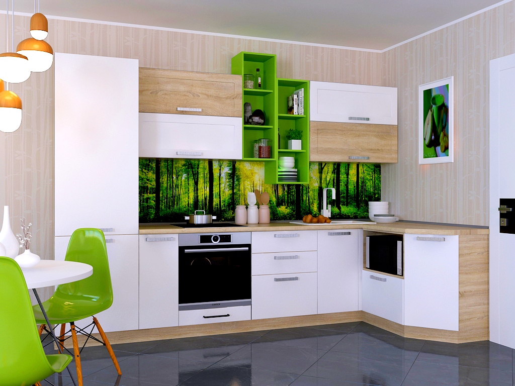Кухня Примавера 4 с изящными фасадами подарит великолепное настроение любой хозяйке. Для фасадов этой модели используются цвета белый и вяз, тем самым задав интересные акценты. Покрытия имитируют фактуры природных материалов. Все это создает атмосферу умиротворения. Отсутствие лицевой фурнитуры на верхних модулях формирует стильный дизайн, визуально расширяет помещение. Корпус и фасады шкафов выполнены из ЛДСП. Планировка угловой кухни – одна из самых удобных среди остальных видов. Она позволяет комфортно использовать рабочее пространство, освобождает место, выглядит компактно. Эта кухня белая. Психологи утверждают: белый — это символ счастья, невинности и чистоты. В цветотерапии с его помощью лечат тревожные расстройства и депрессии. Кухня с глянцевыми фасадами приобретает стильные и современные штрихи. Любые тона начинают смотреться очень выразительно из-за привлекательного глянцевого блеска.