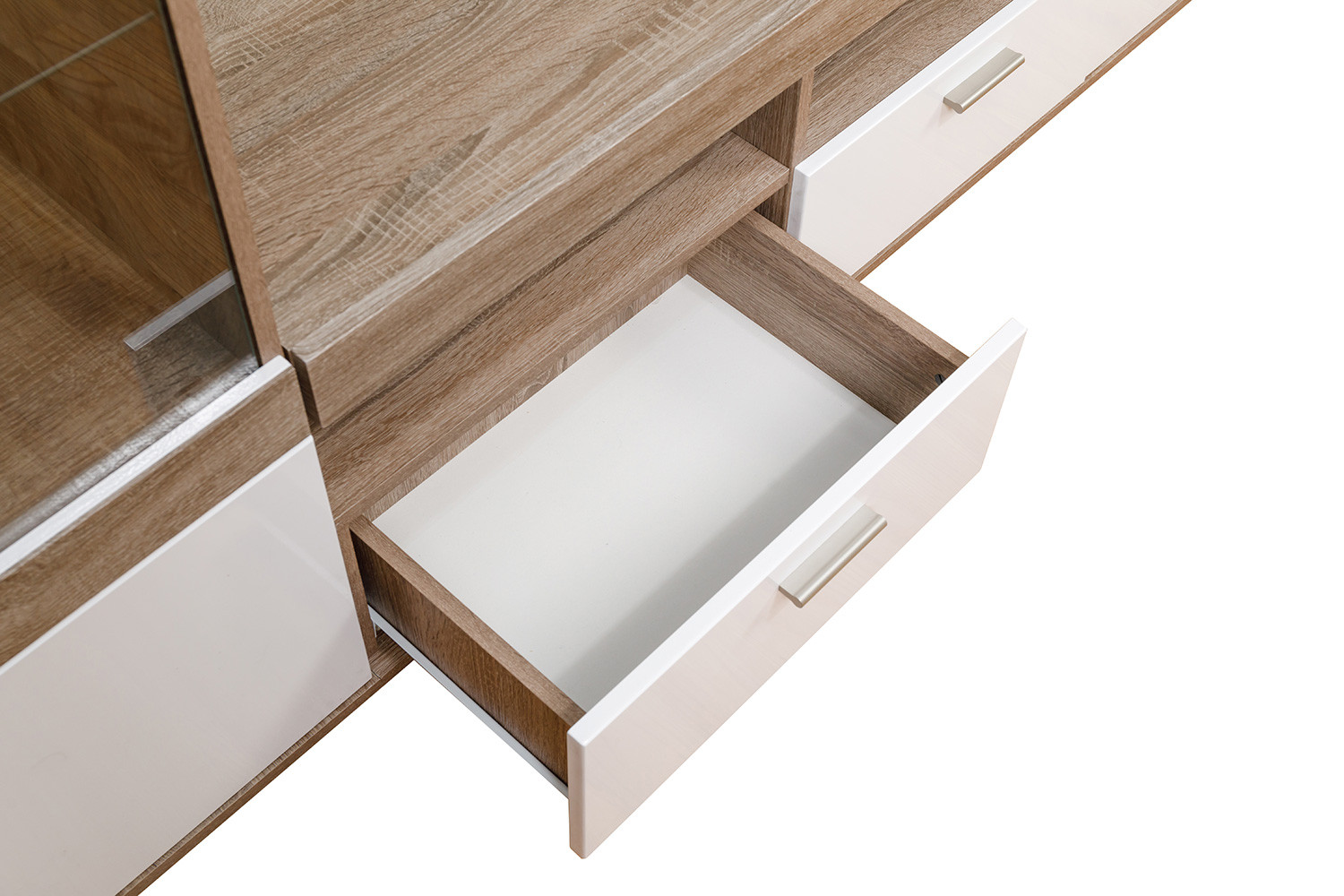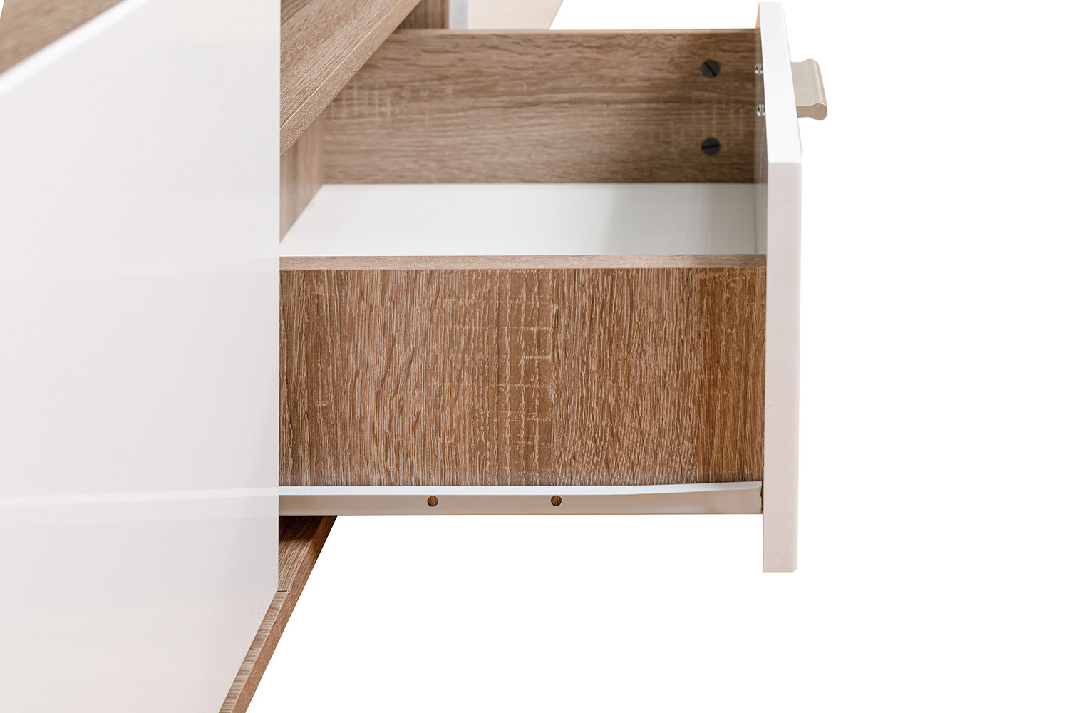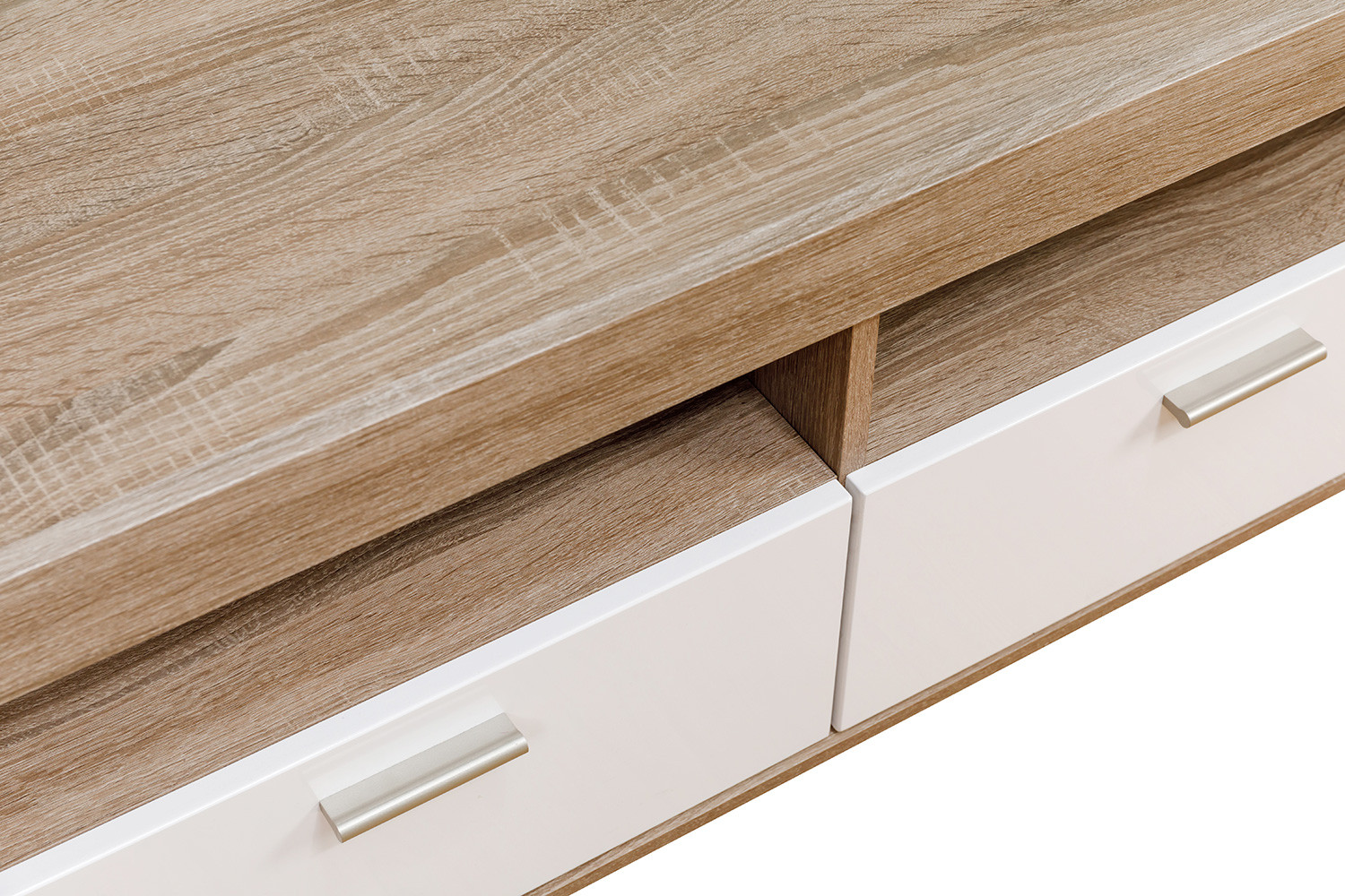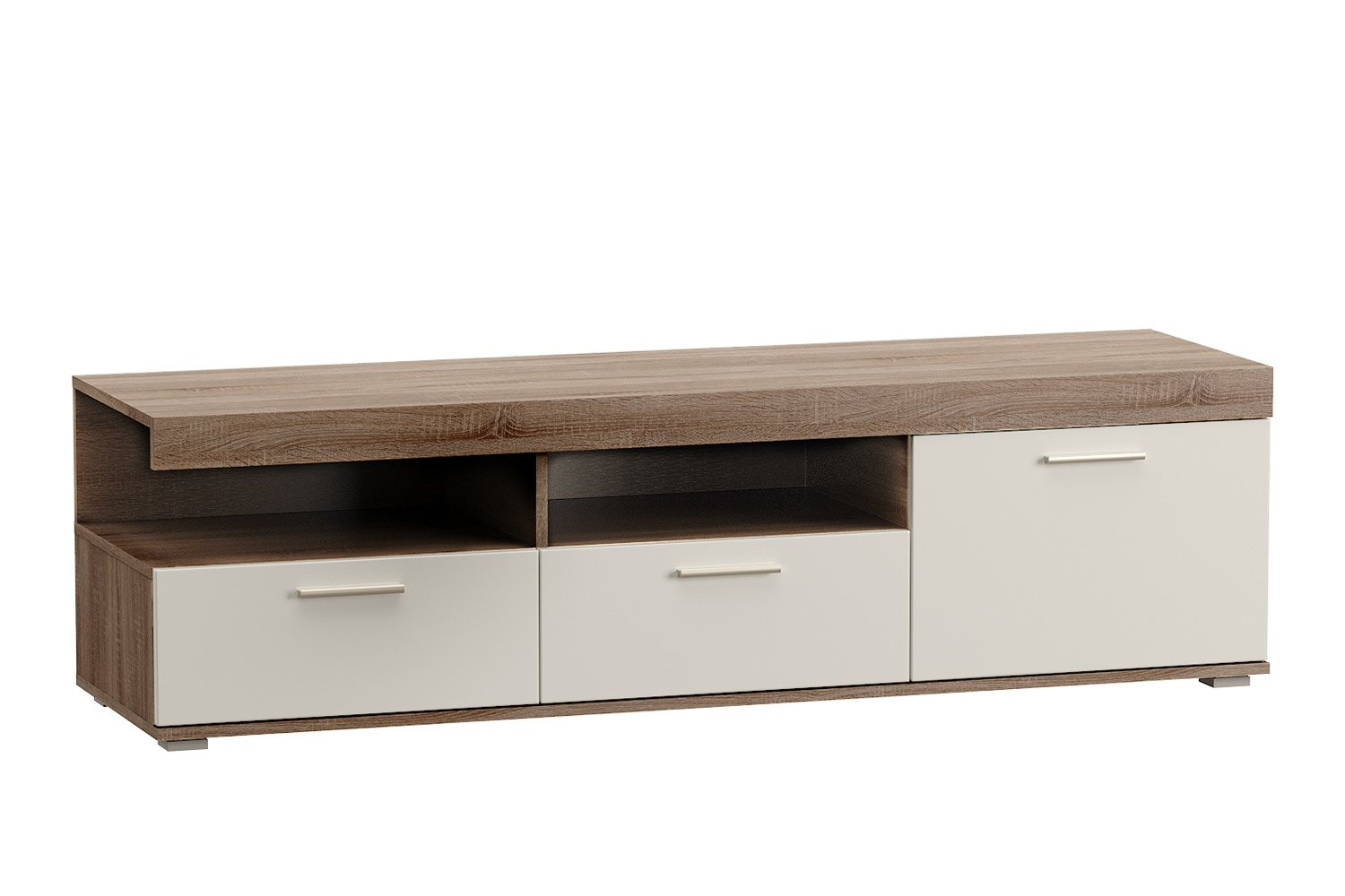 ТВ-тумба Денвер будет отличным дополнением интерьера любой комнаты. Изделие поможет разместить телевизор для более комфортного просмотра новостей, сериалов и различных телепередач. Вместительное внутреннее пространство пригодится для хранения большого количества различных вещей и предметов. Ее можно использовать как отдельный элемент, так и в сочетании с другими модулями гостиной. Для этой модели используются цвета беленый дуб и белый.