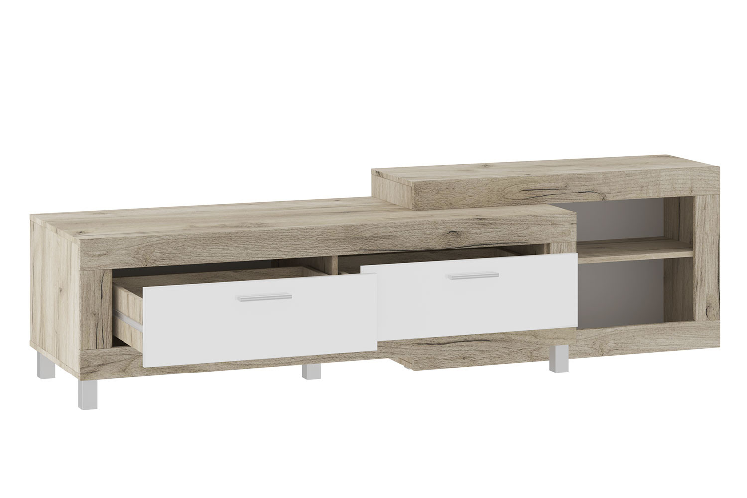 ТВ-тумба Генезис будет отличным дополнением интерьера любой комнаты. Изделие поможет разместить телевизор для более комфортного просмотра новостей, сериалов и различных телепередач. Вместительное внутреннее пространство пригодится для хранения большого количества различных вещей и предметов. Ее можно использовать как отдельный элемент, так и в сочетании с другими модулями гостиной. Для этой модели используются цвета беленый дуб и белый.