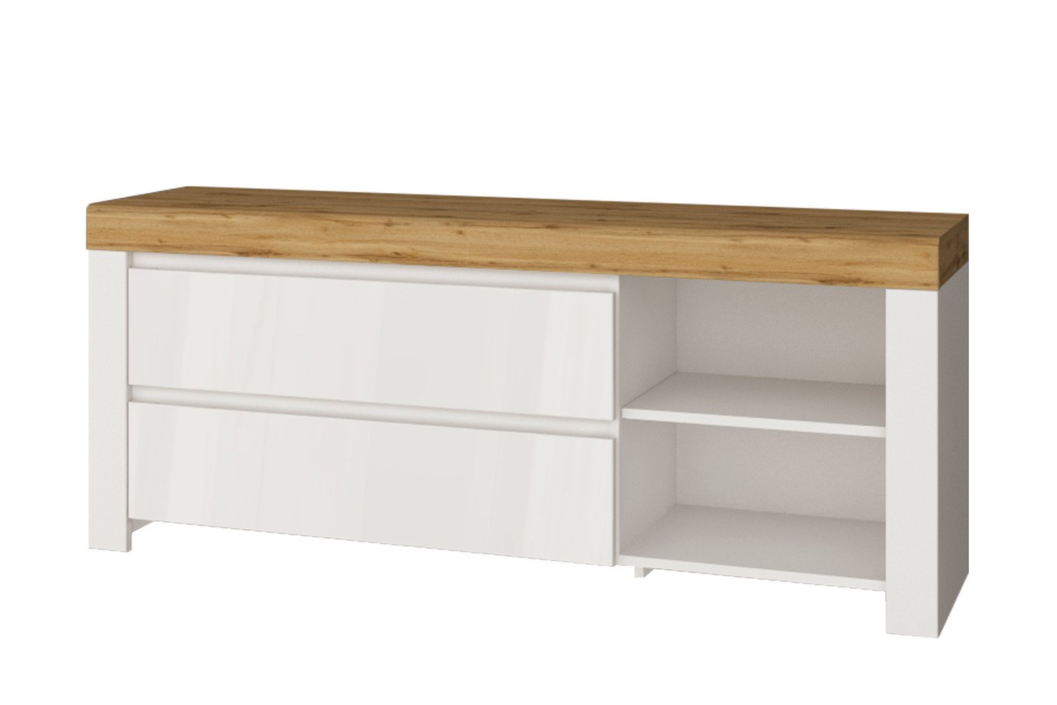 ТВ-тумба Таурус будет отличным дополнением интерьера любой комнаты. Изделие поможет разместить телевизор для более комфортного просмотра новостей, сериалов и различных телепередач. Вместительное внутреннее пространство пригодится для хранения большого количества различных вещей и предметов. Ее можно использовать как отдельный элемент, так и в сочетании с другими модулями гостиной. Для этой модели используются цвета вяз и белый.