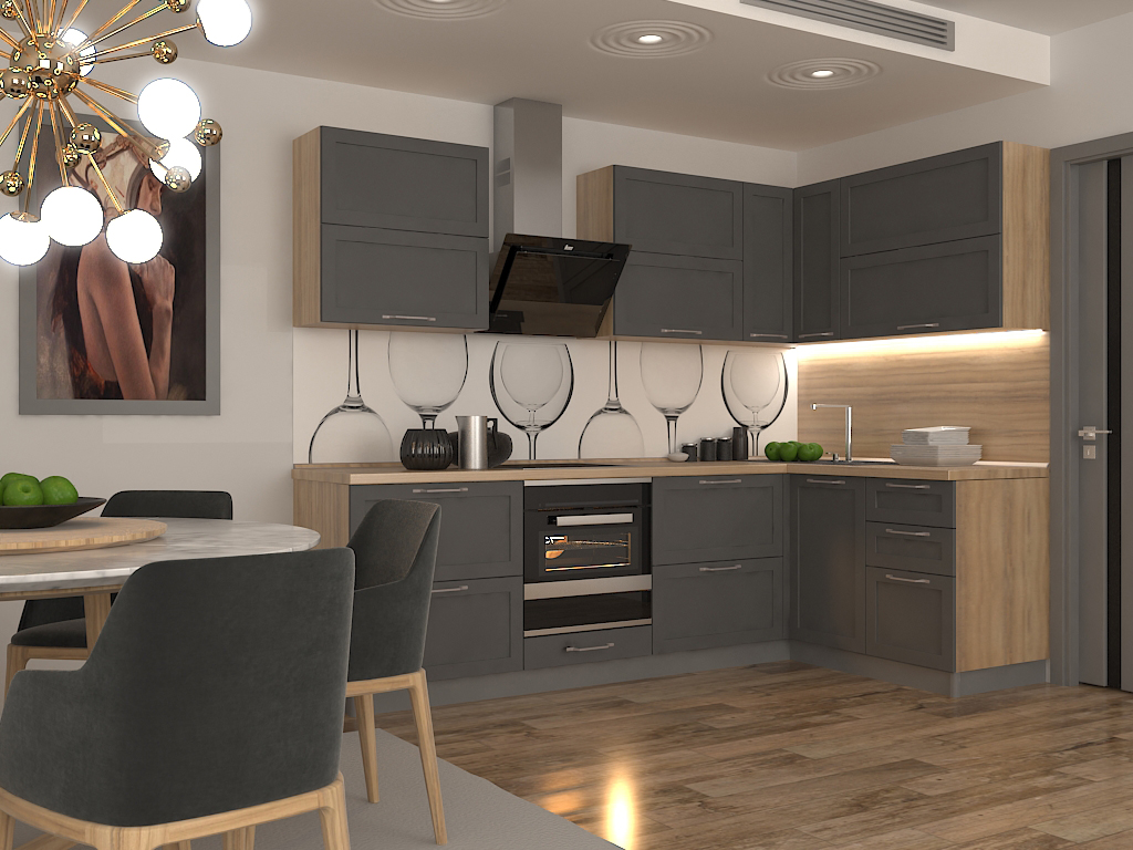 Перед покупкой вы можете посмотреть 3D модель кухни в вашем пространстве, чтобы идеально подобрать ее к вашему дизайну интерьера.