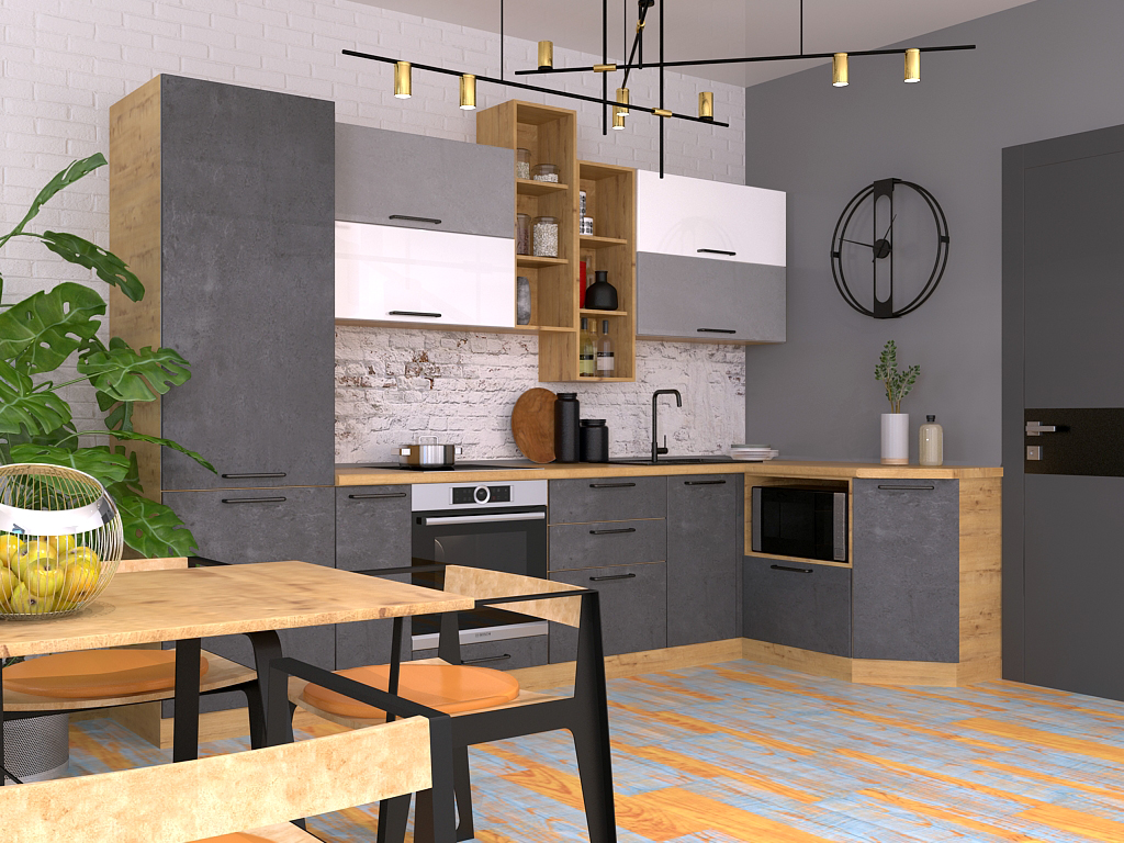 Гарнитур Чикаго 5 имеет современный – это прекрасный выбор для тех, кто обладает великолепным вкусом, чтит семейные традиции и предпочитает жить в атмосфере удобства. Модель Чикаго 5 олицетворяет центр домашнего очага в лучшем ее проявлении. Аристократичная роскошь и сдержанная элегантность – это основные составляющие дизайнерской идеи кухни Чикаго 5. Скрупулезно выполненные фасады добавляют обстановке роскошь и торжественность. Благодаря большому количеству ящиков и шкафчиков угловая конструкция является наиболее вместительным вариантом, позволяющим обеспечить комфортное хранение посуды и бытовой техники. Дизайн кухни в сером цвете, это современное и практичное решение. Данный оттенок легко впишется в любой стиль, на нем не видно грязи и он отлично сочетается со всей палитрой цветов. Это кухня большая - здесь всегда хватит места и для приготовления пищи, и для семейных ужинов, и для приема гостей. Кухня в стиле лофт – довольно популярная тенденция, она уходит своими корнями в эстетику старых складов, где хранились промышленные материалы или продукты. На кухне на первый план выходит индустриальное творчество. В этой модели используются матовые фасады - они очень практичны, немаркие и за ними очень легко ухаживать. На них не остаются видимыми отпечатки пальцев.