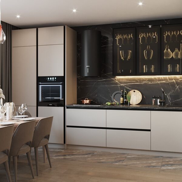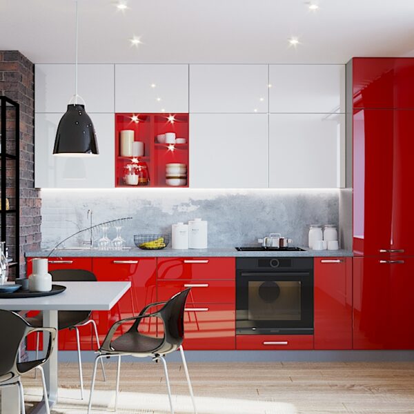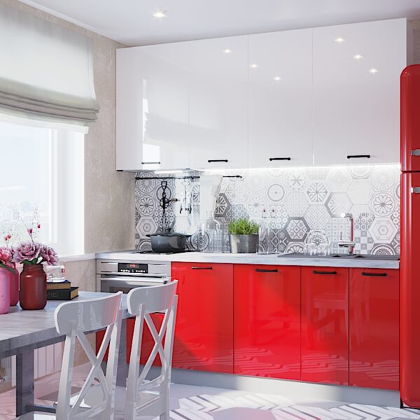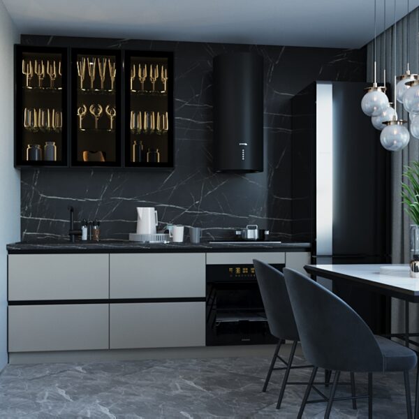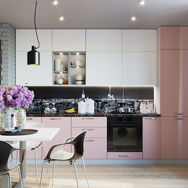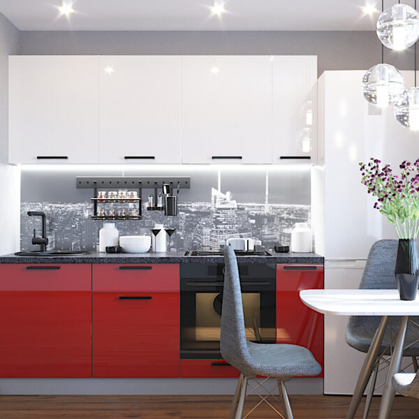 Прямые кухни еще по-другому называют линейными, так как они устанавливаются в один ряд и не имеют изгибов. Такая планировка просто идеальна, если площадь кухни, где вы обычно занимаетесь приготовлением пищи, завтракаете, обедаете и ужинаете, не очень большая.